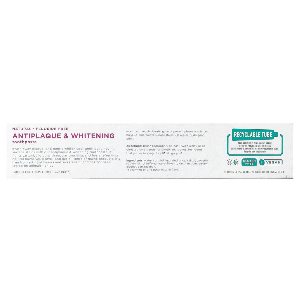 Удаляйте зубной налет* и удаляйте поверхностные пятна с помощью этой зубной пасты против налета и отбеливающей, мягко отбеливающей ваши зубы. Он помогает контролировать образование зубного камня при регулярной чистке, и вам понравится его освежающий, натуральный вкус.. Как и все продукты Tom's, он не содержит искусственных ароматизаторов и подсластителей и не тестируется на животных.. Наслаждаться!