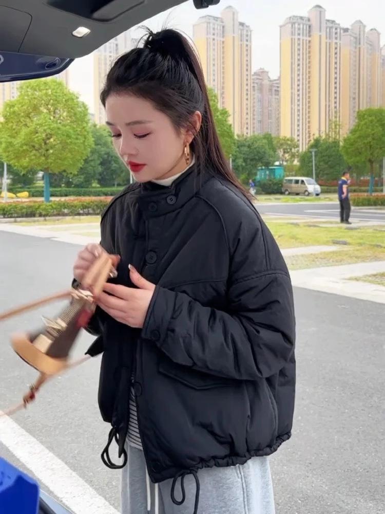 Женская приталенная легкая стеганая куртка с воротником-стойкой на осень/зиму 2024 - Повседневное теплое хлопковое пальто маленького размера