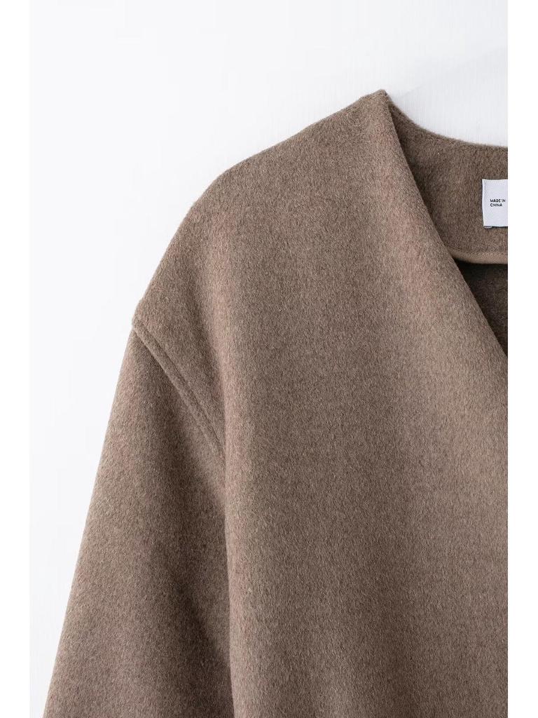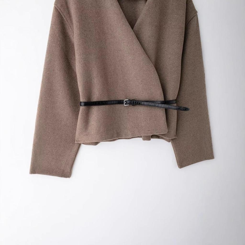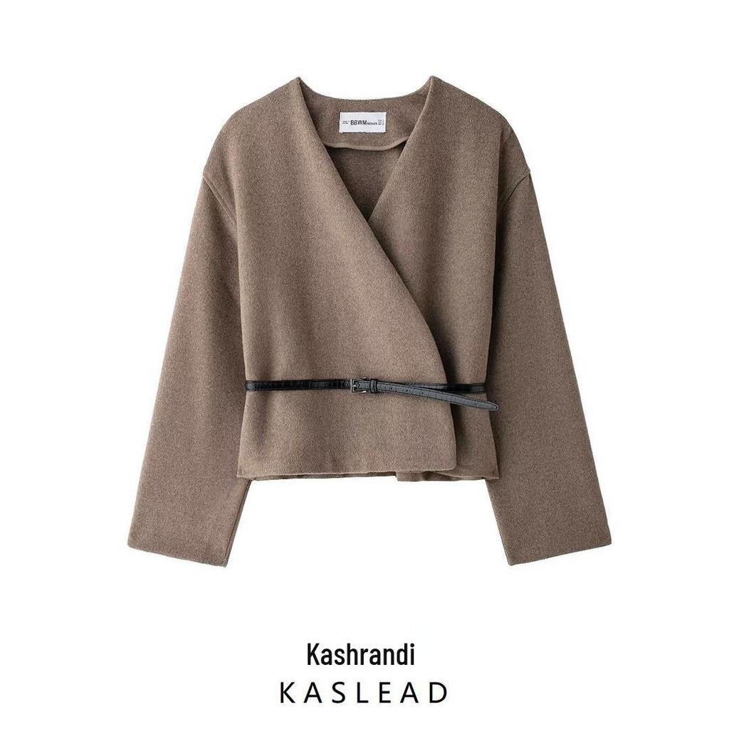 Женская куртка на осень 2024 года в европейско-американском стиле с V-образным вырезом и длинными рукавами, с поясом