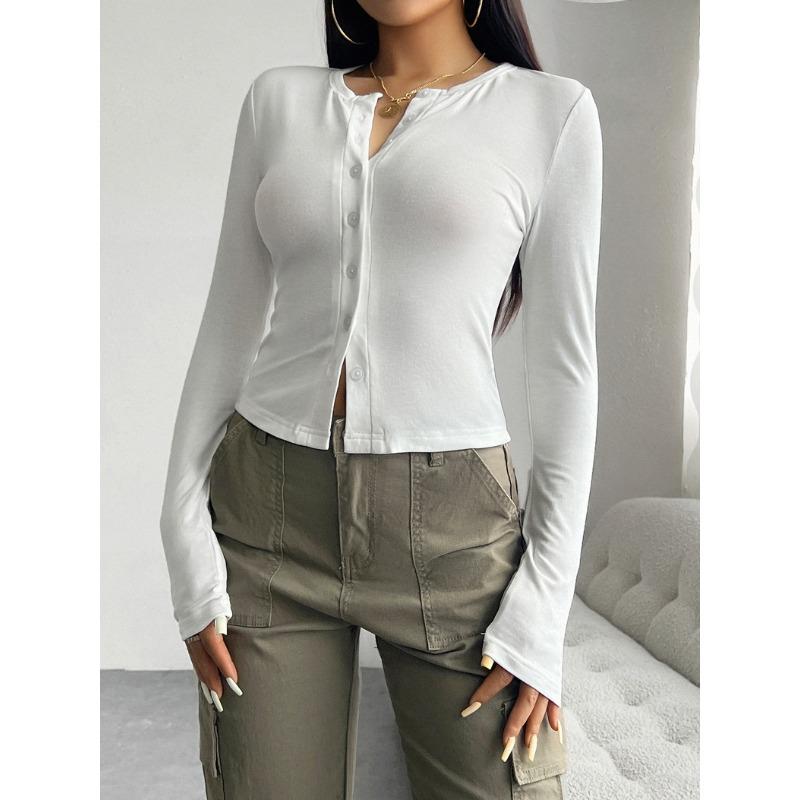 DAFIFY Женские модные повседневные весенне-осенние однотонные блузки и рубашки с v-образным вырезом и длинным рукавом с принтом