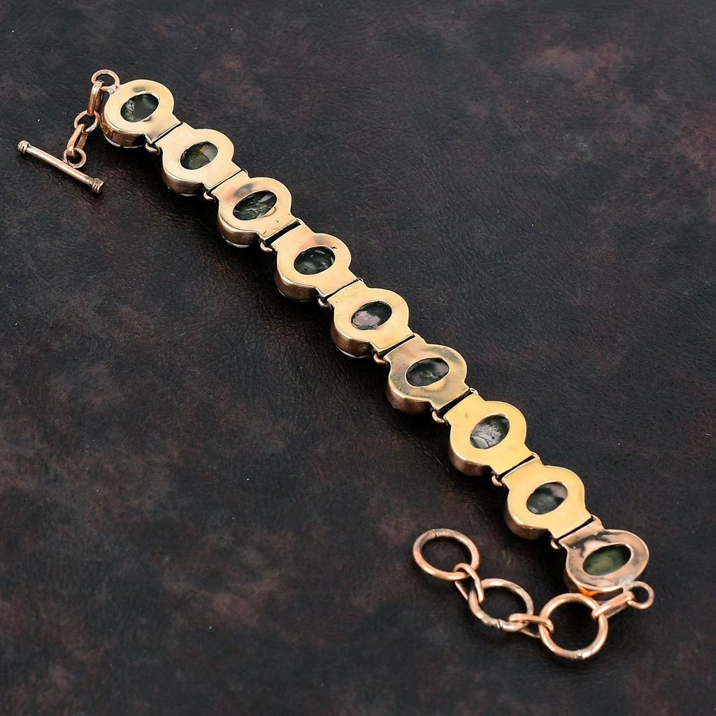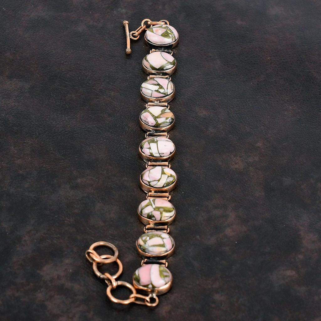 Медный браслет с розовым опалом, медный браслет с регулируемой цепочкой, украшение из драгоценного камня, браслет ручной работы, элегантные медные украшения, подарки для него