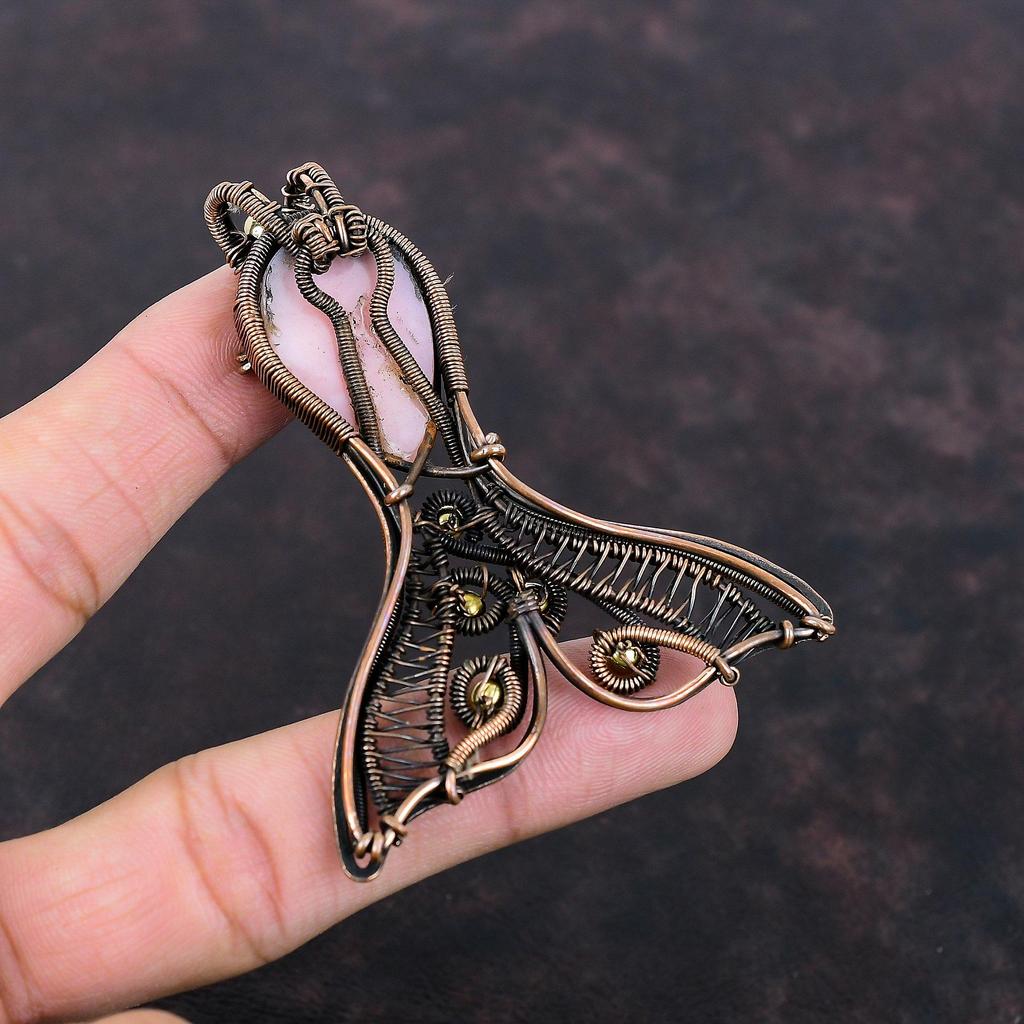 Pink Opal Gemstone Pendant Copper Wire Wrapped Pendant Fish Pendant Designer Copper Jewelry Handmade Pendant Elegant Jewelry Gift For Mother