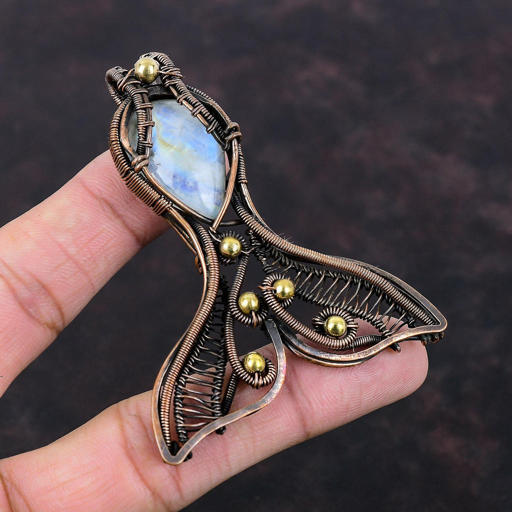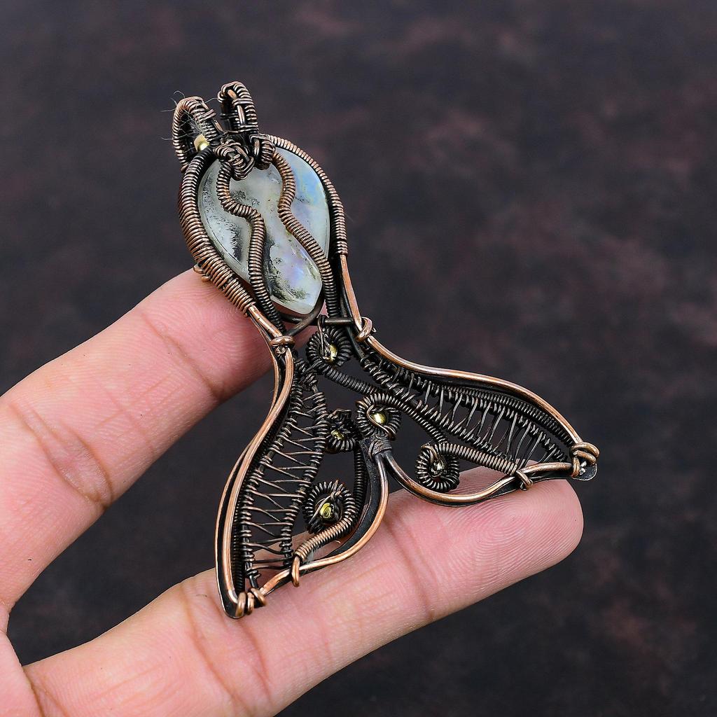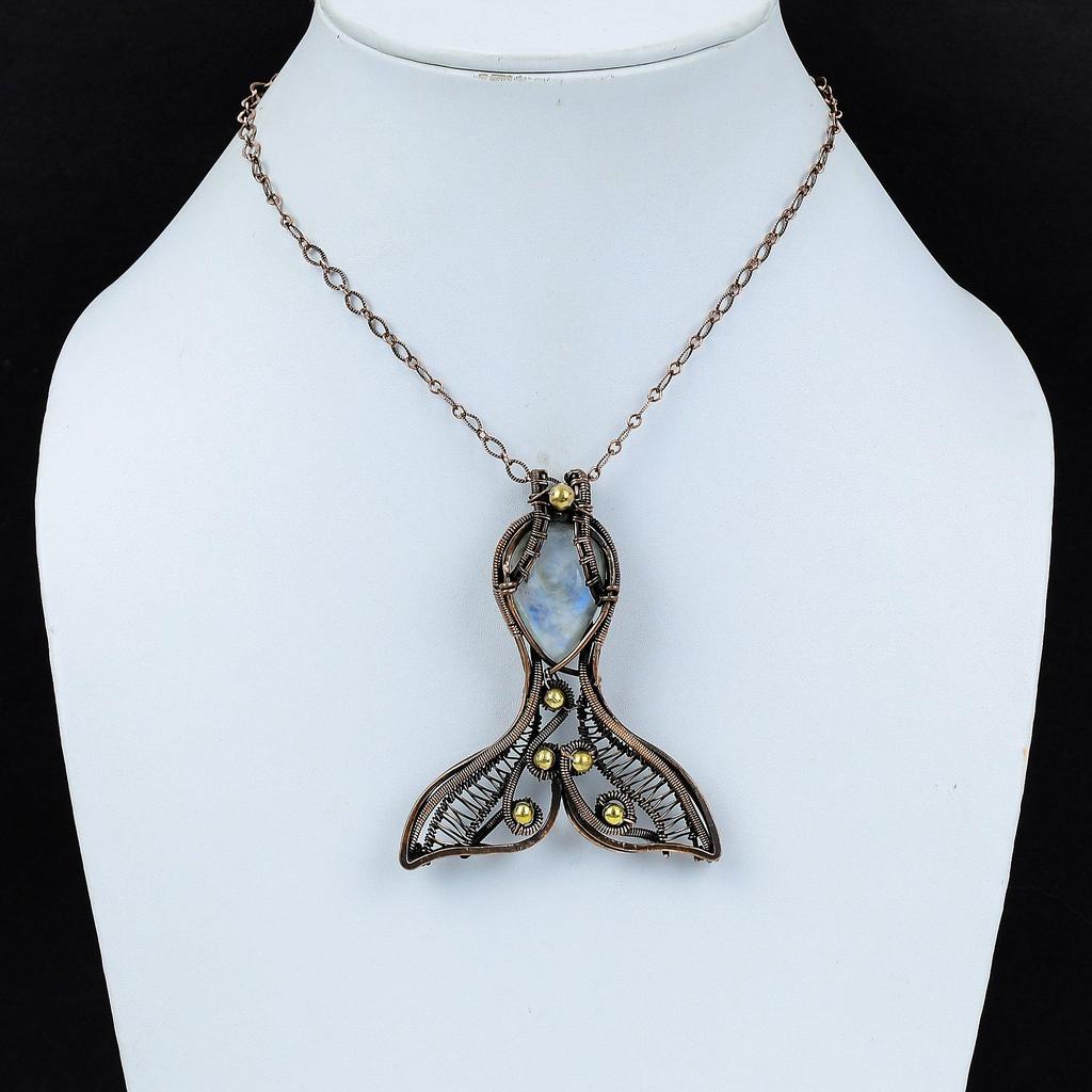Rainbow Moonstone Pendant Copper Wire Wrapped Gemstone Pendant Fabulous Fish Pendant Handmade Copper Jewelry Designer Pendant Wedding Gifts