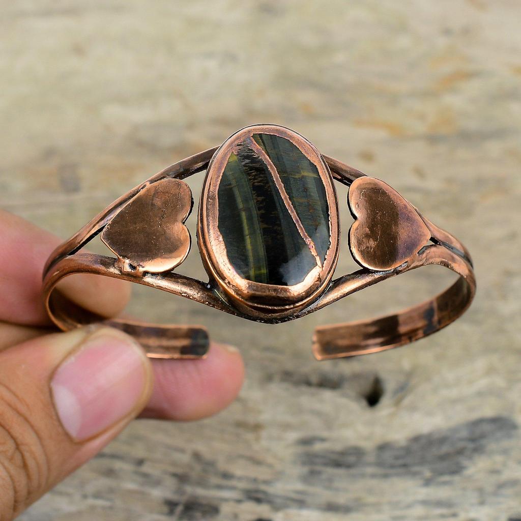 Питерсит Браслет Камень Манжета Браслет Гальванопластическая Медь Браслет Регулируемая Манжета Ручная Работа Гальванопластические Украшения Подарки Для Нее