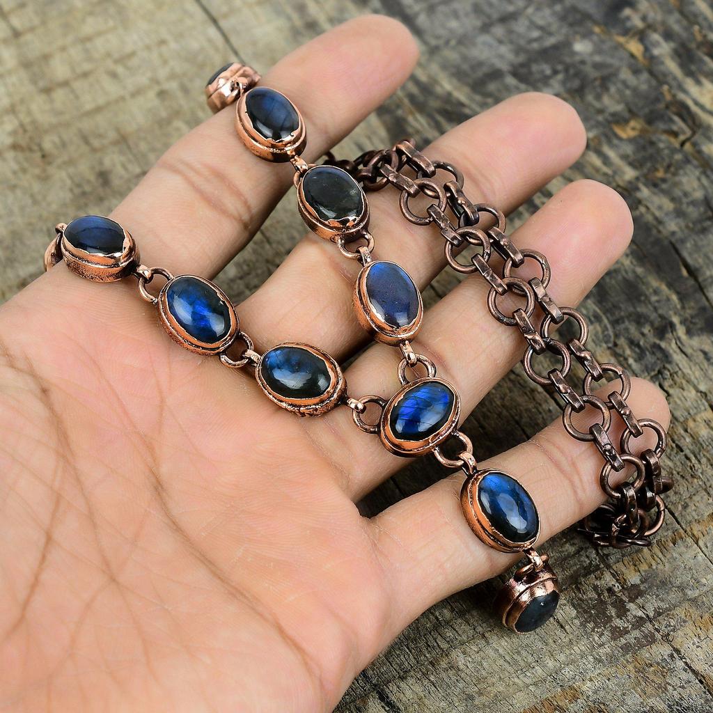 Ожерелье из лабрадорита, гальванизированная медь, регулируемая цепочка, ожерелье из лабрадорита, ювелирные изделия из драгоценных камней, ожерелье ручной работы, медные украшения для подарков