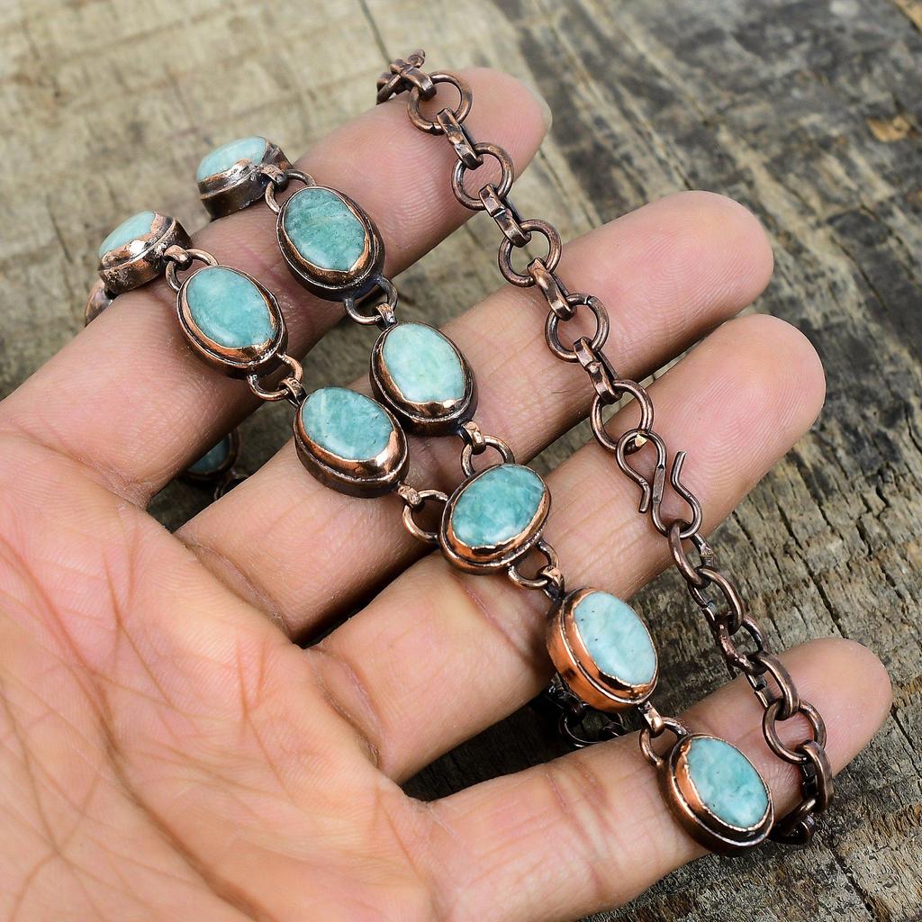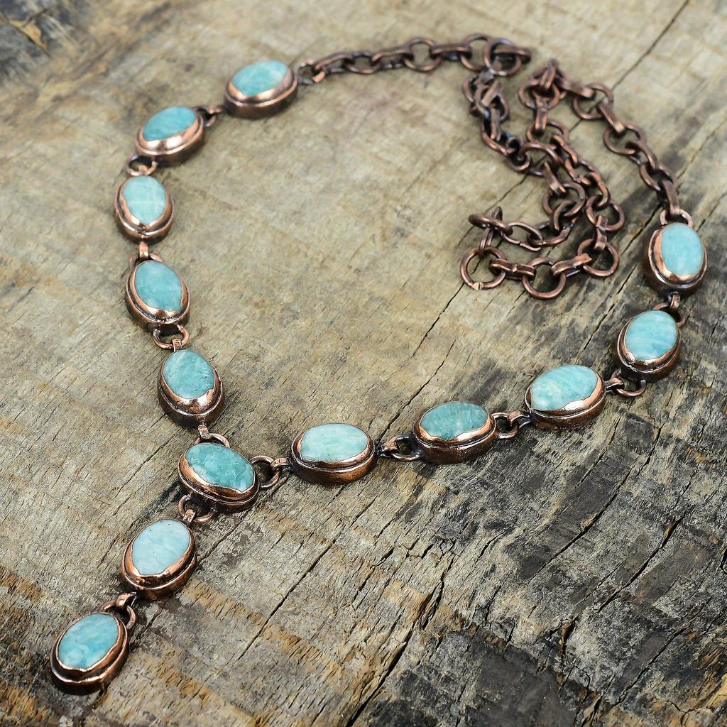 Ожерелье из амазонита, ожерелье из электроформированной меди, ожерелье с регулируемой цепочкой, красивые медные украшения, ожерелье из драгоценных камней ручной работы, свадебные подарки