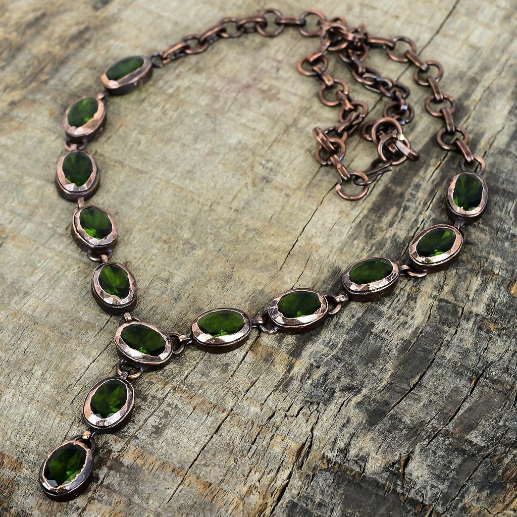 Ожерелье из ограненного перидота, гальванизированная медь, регулируемая цепочка, украшения из перидота, ручная работа, новое ожерелье, подарки для женщин