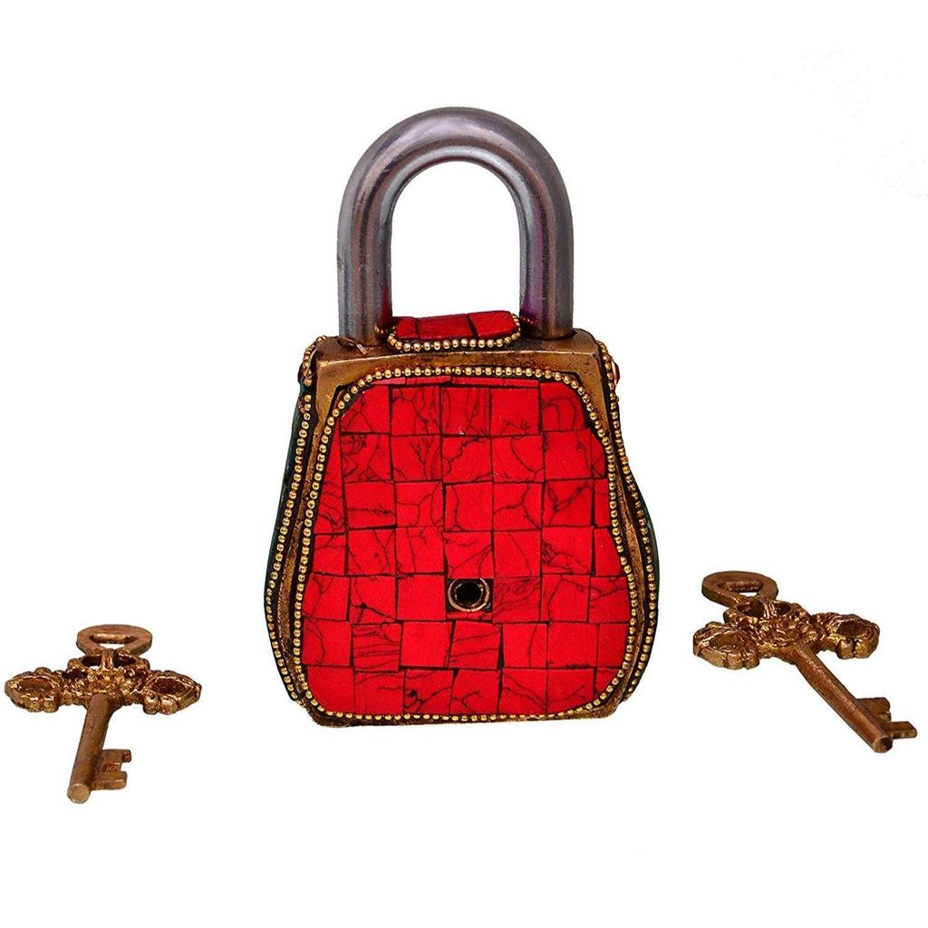 Замок-навесной замок в форме совы, ручной работы, из латуни, антикварного дизайна, с инкрустацией цветными драгоценными камнями, размеры изделия - 8 x 4,5 x 12 см, 650 г
