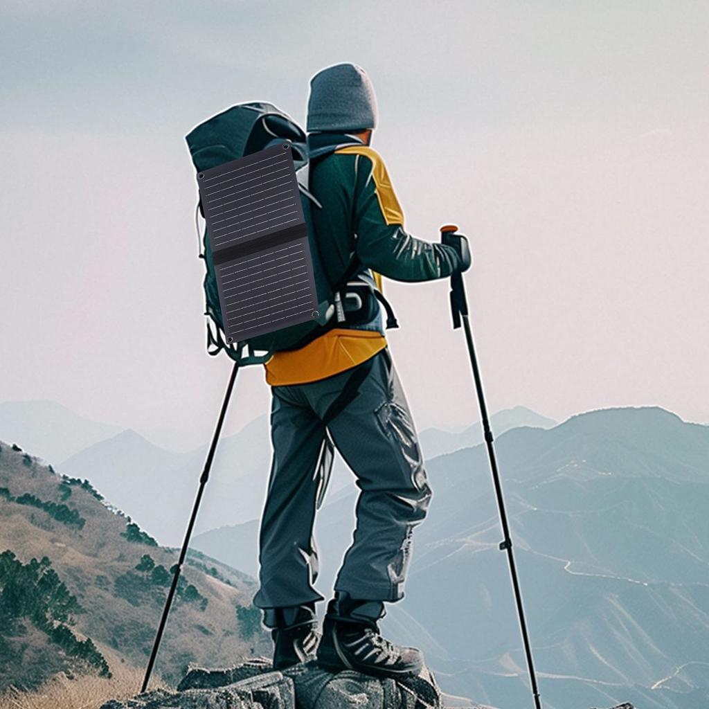 4. Портативная двухстворчатая конструкция: Легкая, складывающаяся вдвое конструкция панели солнечной зарядки делает ее удобной для переноски, идеальной для активного отдыха, гарантируя, что вы сможете заряжать свои устройства, когда и где это необходимо.