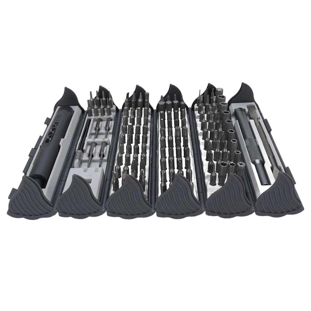 1. Полный набор инструментов: Набор электрических отверток «124 в 1» включает в себя полный набор отверток, пинцетов и дополнительных инструментов, оснащенных аккумулятором емкостью 230 мАч для легкого выполнения различных ремонтных задач.