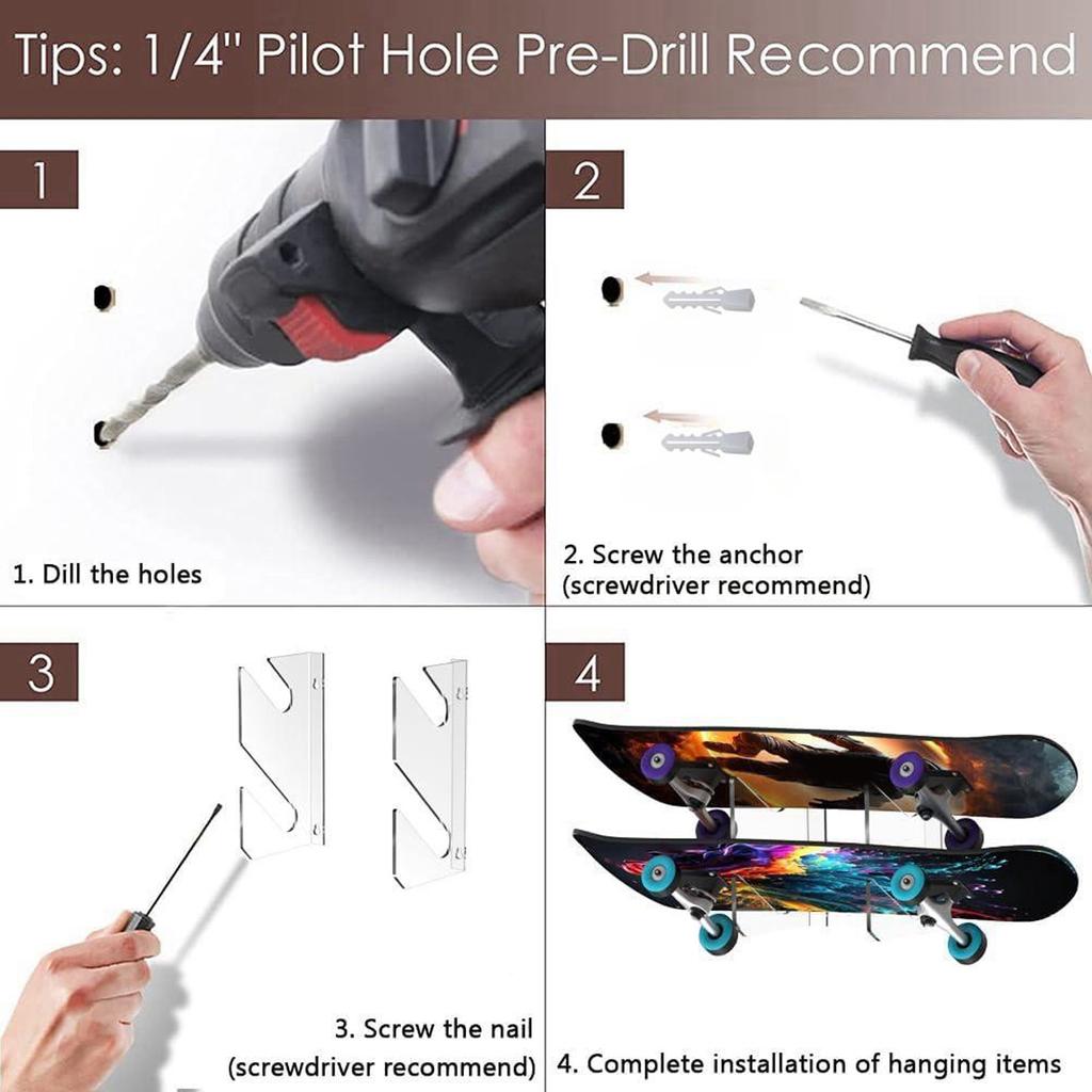 2-уровневая настенная стойка для скейтборда, акриловая, экономящая место, устойчивая, простая в установке, для лонгборда, сноуборда