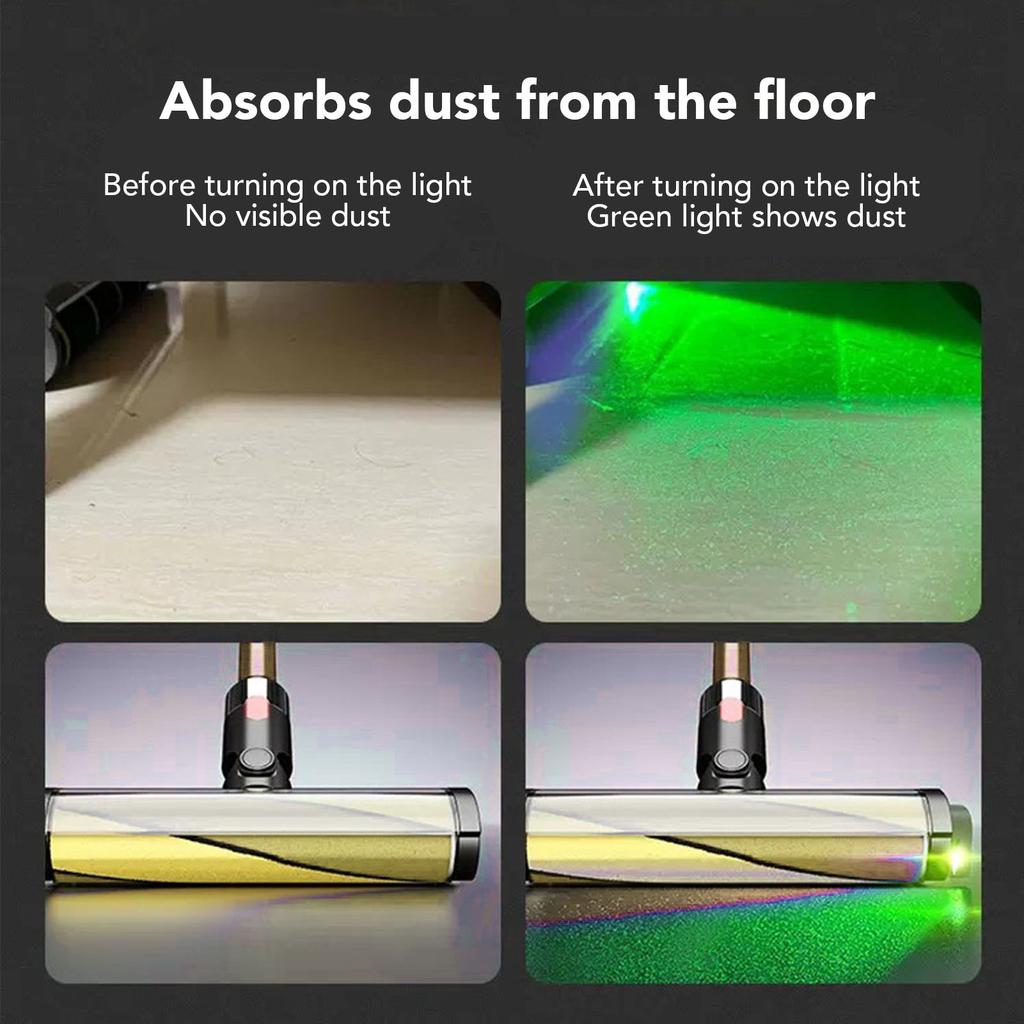 4. Освещение, безопасное для глаз и домашних животных: С мягкой подсветкой этот зеленый и фиолетовый пылевой свет защищает глаза и домашних животных, позволяя легко заметить мельчайшую пыль или волосы, и подходит для домов, чувствительных к пыли или шерсти домашних животных.