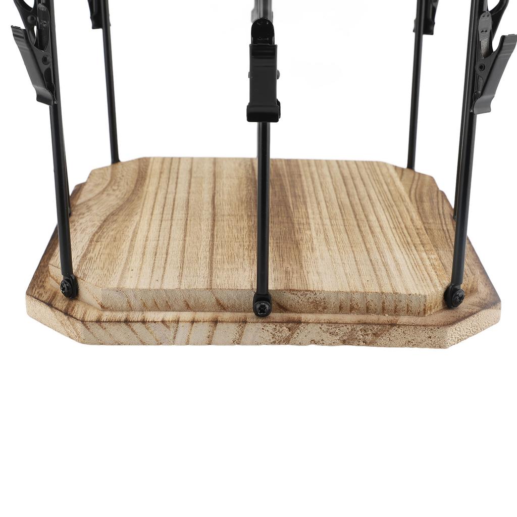 1. Металлическая конструкция с деревянным основанием: Изготовленная из высококачественного металла с деревянным основанием, эта стойка для чипсов имеет прочную и устойчивую конструкцию, обеспечивающую длительный срок службы при регулярном использовании.