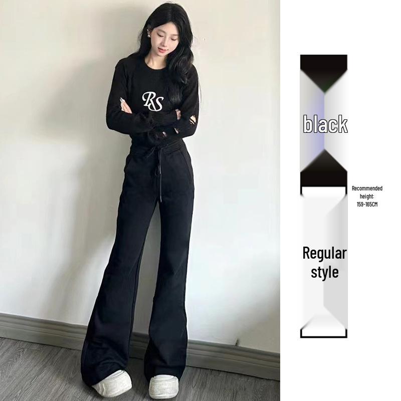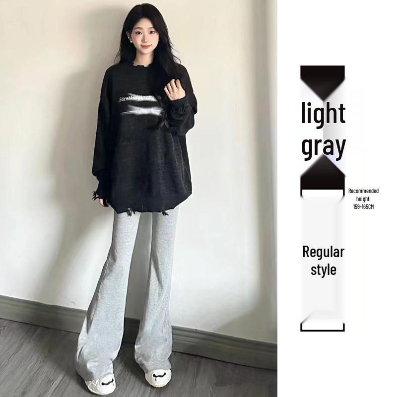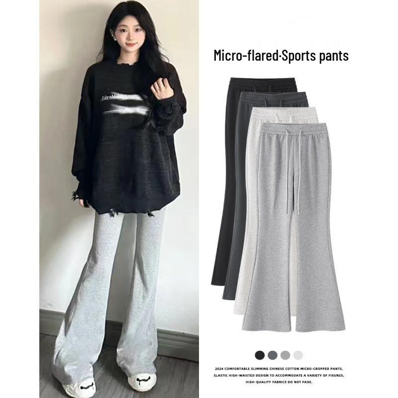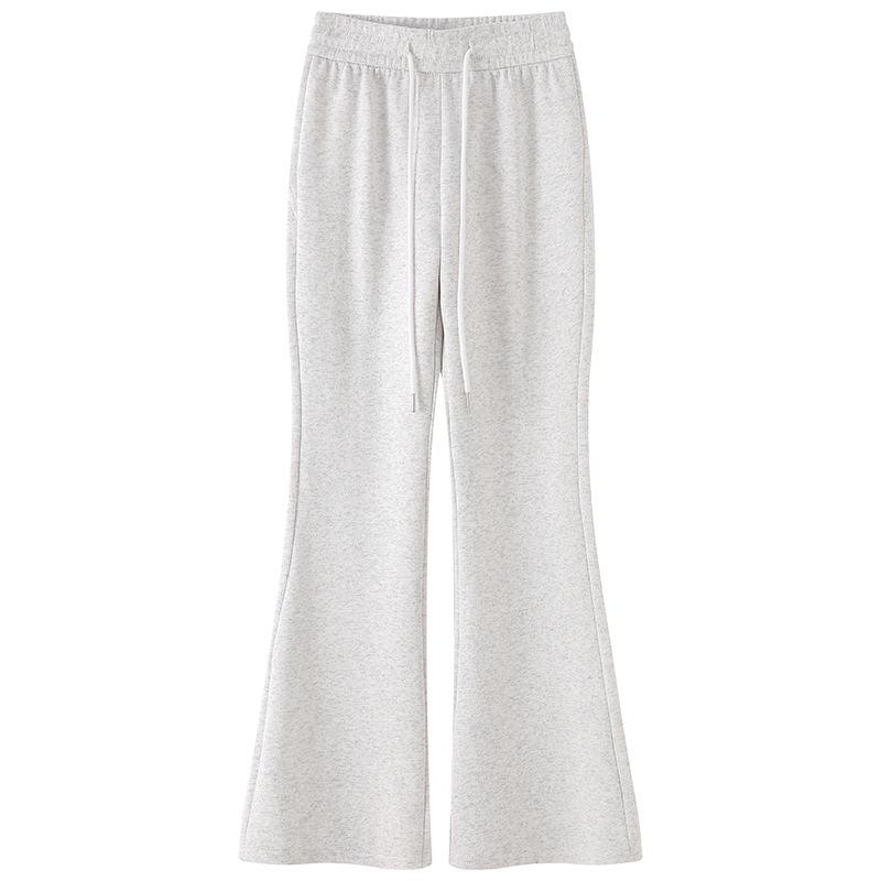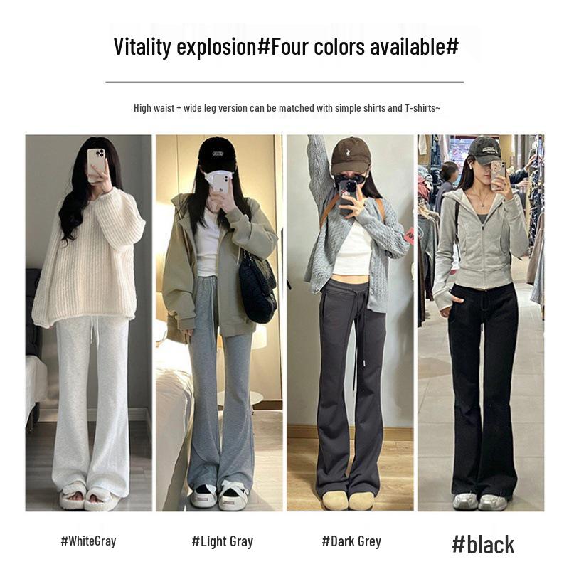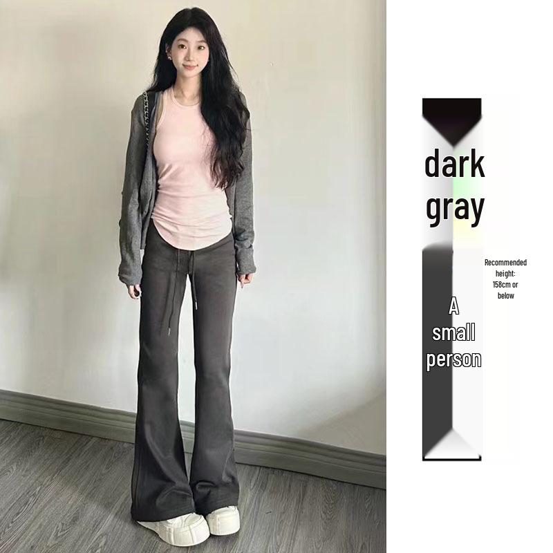2024 Женские серые спортивные брюки клеш с высокой талией - Приталенные повседневные драпированные длинные брюки в американском стиле