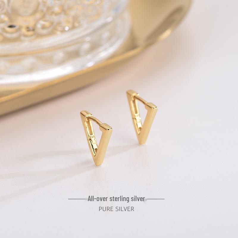Серьги-пусеты из стерлингового серебра 925 пробы в простом треугольном дизайне, в японско-корейском стиле, с холодной эстетикой и бриллиантовым акцентом, подчеркивающим индивидуальность