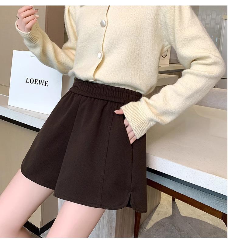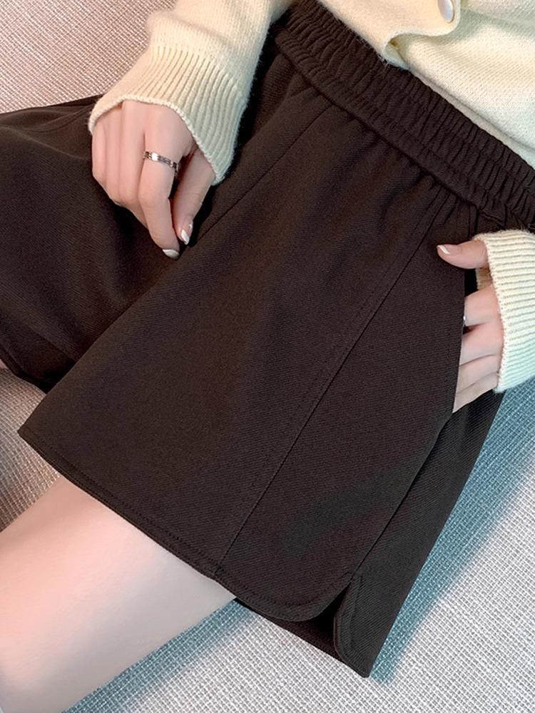 Женские черные шерстяные шорты А-силуэта с высокой талией и широкими штанинами - повседневная одежда для осени/зимы