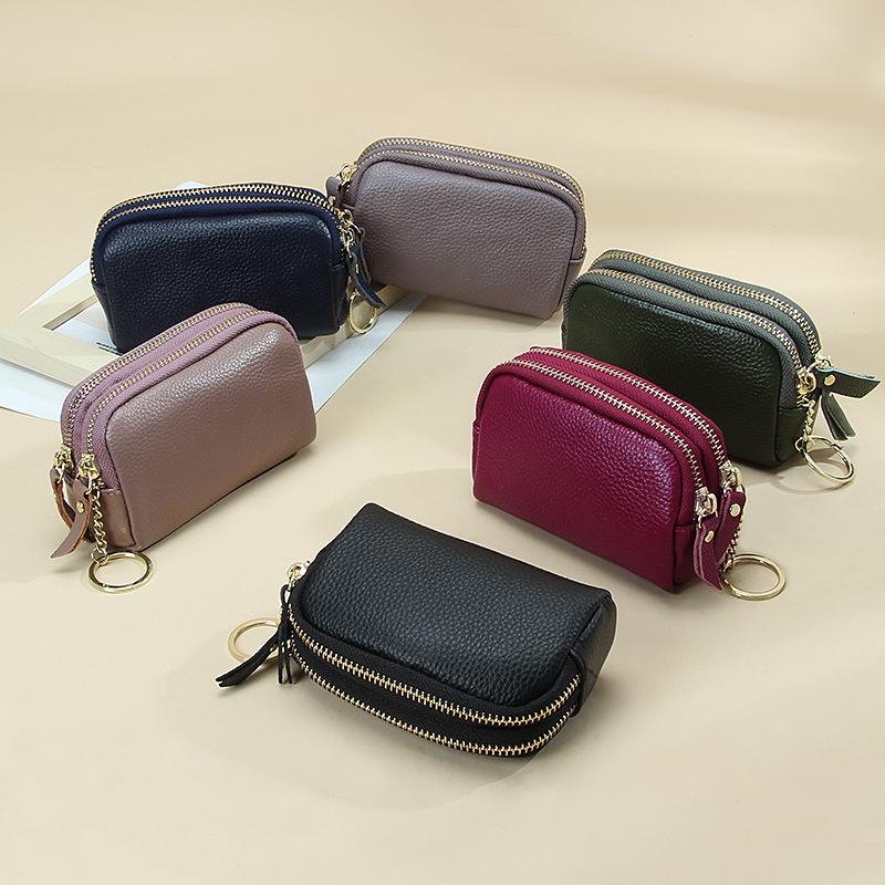 Европейско-американский кошелек для монет из натуральной кожи - Двойная молния, Большая вместимость, Стильный клатч — купить товар онлайн с бесплатной доставкой по всему миру!