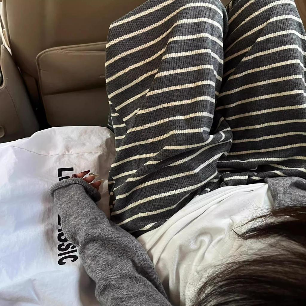 Experience comfort and style with these petite-sized, high-waisted drawstring pants, crafted for a sportive look. Designed with a soft, wide-leg fit, they are perfect for both spring and autumn. Made from flexible spandex material, these pants provide ease of movement while the striped pattern adds a touch of flair to your wardrobe.