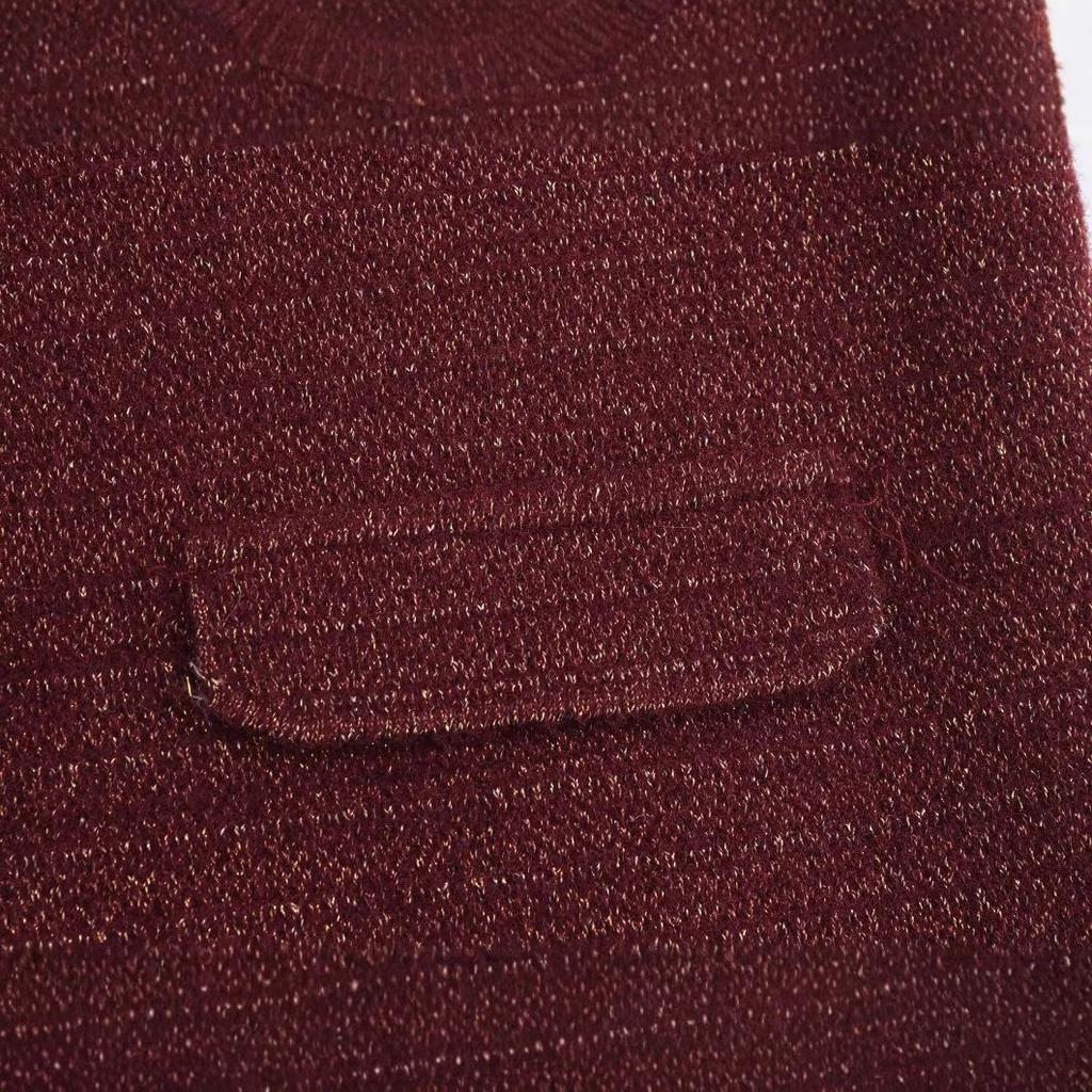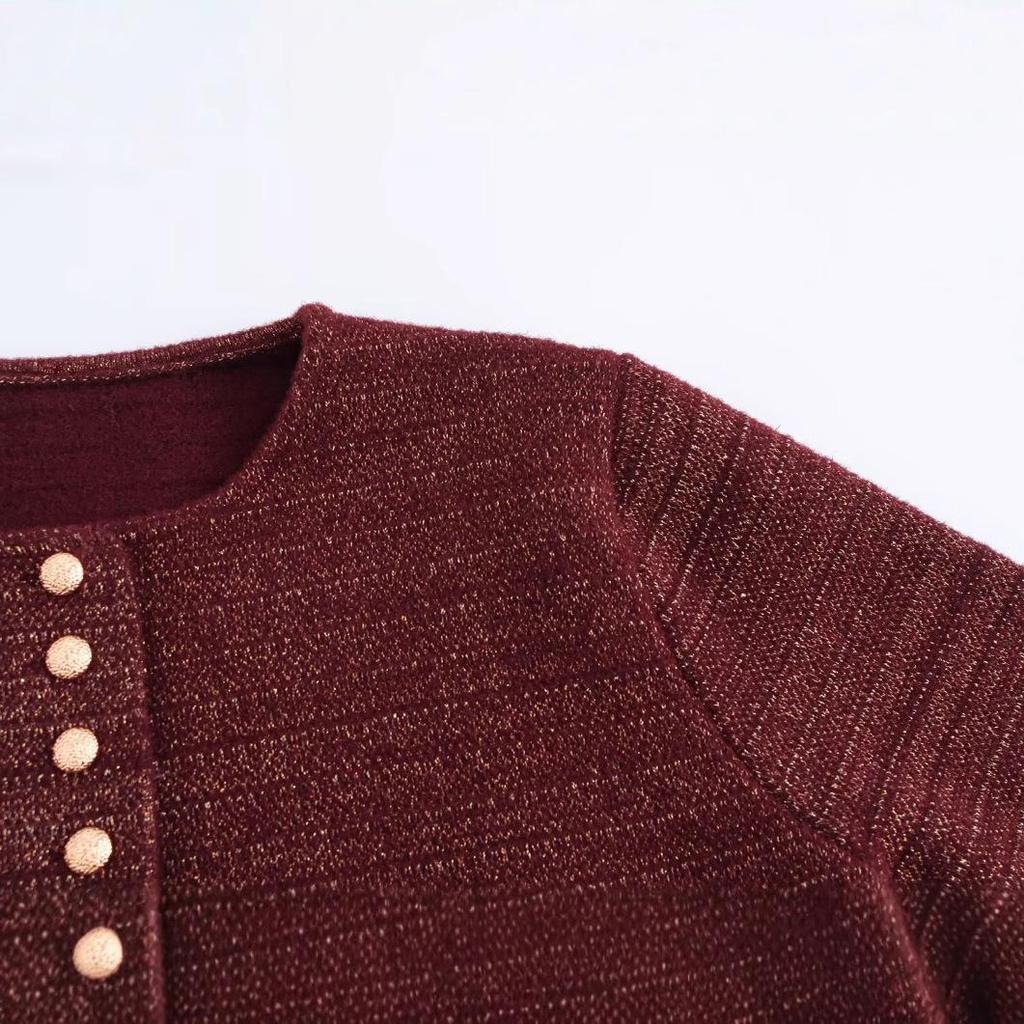 2024 Осень Женский Кардиган Свитер В Европейском и Американском Стиле Золотой Нитью