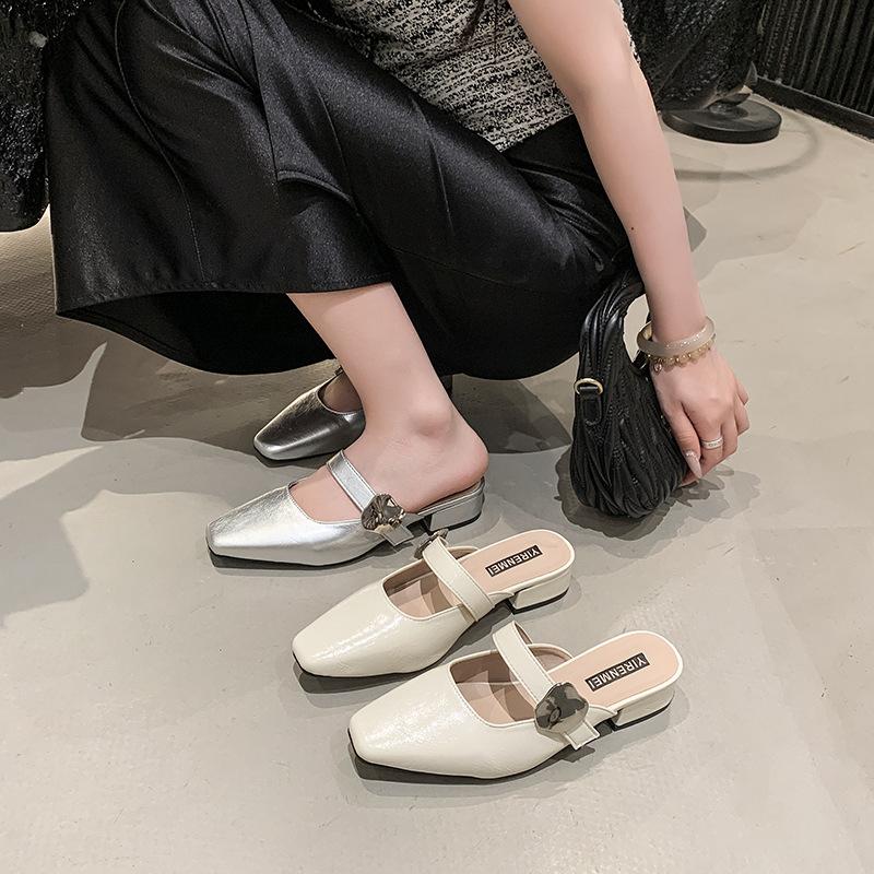 Баотоу полутапочки женские летние новые универсальные темпераментные на низком каблуке на липучке одинарные туфли