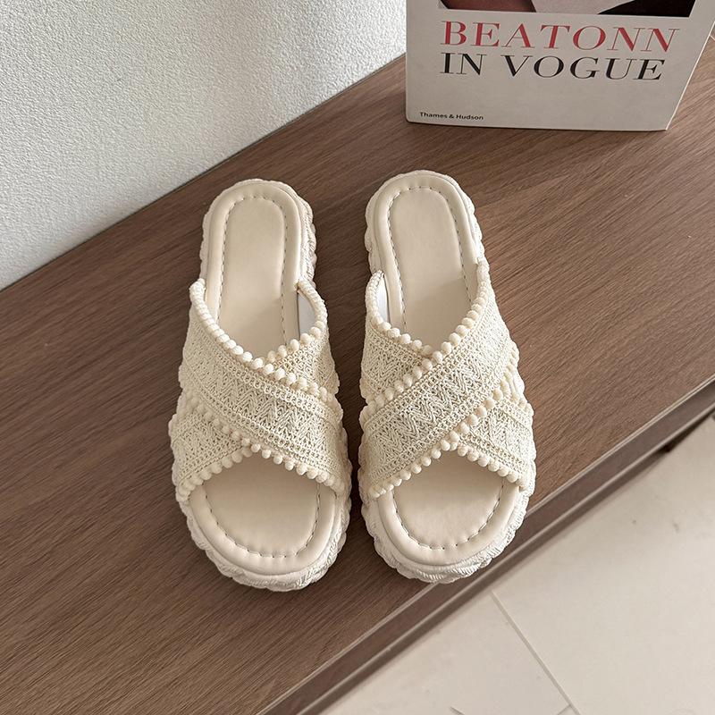 Летние соломенные туфли-рыбаки женские крест модная одежда толстоподошвенные крутые шлепанцы однословные пляжные шлепанцы