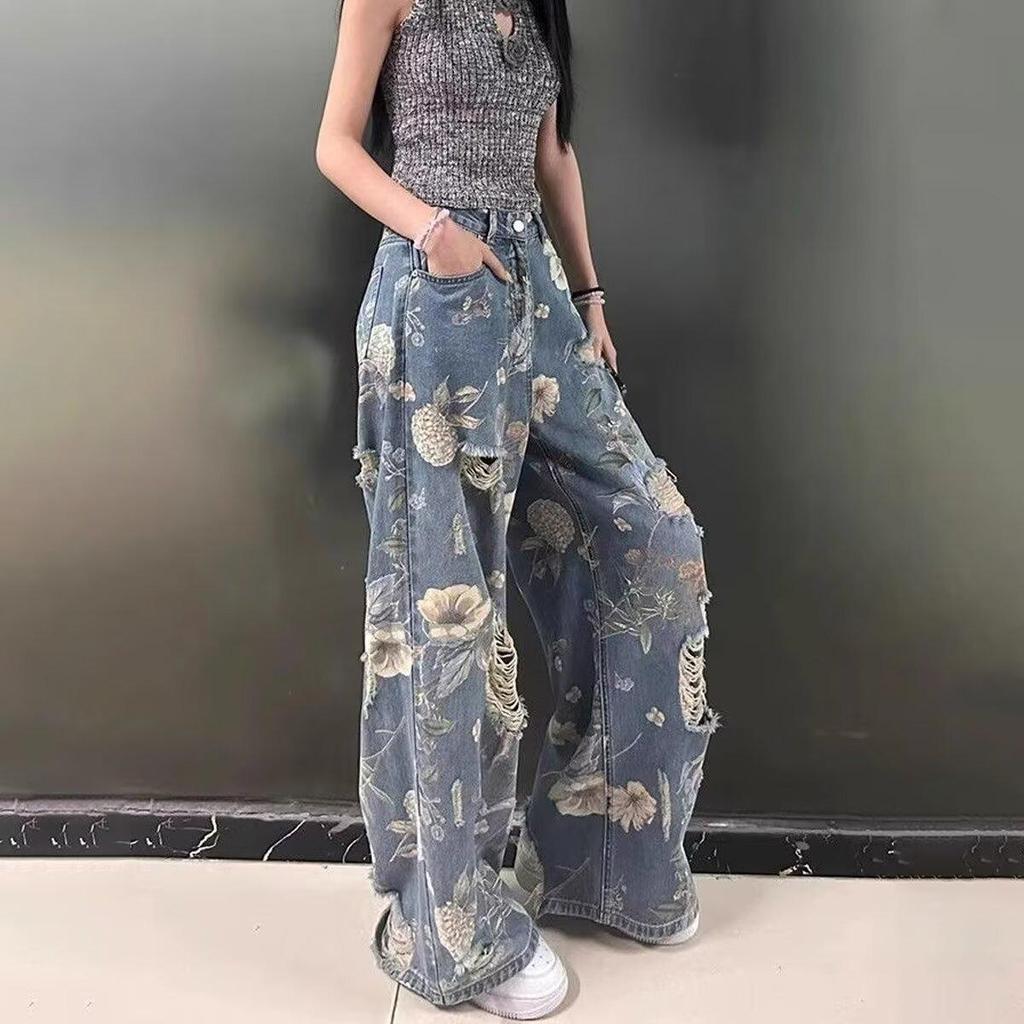 Представляем наши стильные женские джинсы больших размеров с высокой посадкой, в стиле ретро, с цветочным принтом, рваные, с широкими штанинами, созданные для крутого и уверенного летнего образа.. Изготовленные из премиального денима, эти джинсы имеют льстящую высокую посадку, обеспечивая шикарную и удобную посадку.. Ретро цветочный узор добавляет нотку винтажного очарования, а намеренно рваный дизайн придает современную, дерзкую атмосферу.. Эти джинсы прямого кроя длиной до пола создают воздушный силуэт с широкими штанинами, идеально подходящий для модного заявления в течение всего сезона.. Идеально для женщин с пышными формами, которые хотят сочетать комфорт и стиль в своем гардеробе.