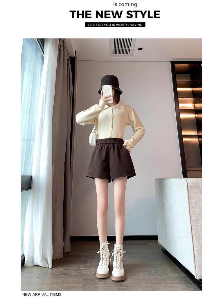 Оставайтесь стильными и чувствуйте себя комфортно в прохладные месяцы с этими шерстяными шортами А-силуэта с высокой посадкой для женщин, идеальными для осени и зимы.. Эти шорты маленького размера с шикарной высокой талией и лестно сидящим широким кроем представляют собой современную интерпретацию классической шерстяной одежды.. Изготовленные из высококачественных полиэстеровых материалов, они обеспечивают тепло и долговечность, сохраняя при этом уютное ощущение.. Идеальные для повседневных выходов, эти шорты сочетают в себе элегантность и удобство, что делает их универсальным дополнением к вашему гардеробу.