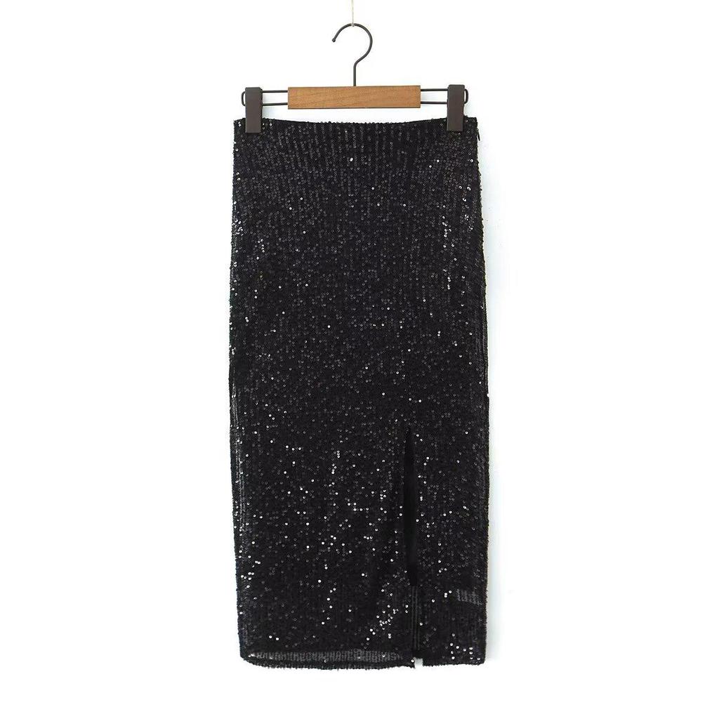 Зима 2024 Женская юбка миди облегающего кроя в европейском и американском стиле с пайетками