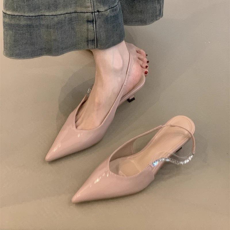 Знаменитые туфли на высоком каблуке весенне-летнего темперамента элегантные со стразами с острым носком с неглубоким вырезом на тонком каблуке с сумкой на носке пустые сандалии