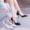 Осень новые туфли-лодочки на высоком каблуке с пряжкой на одно слово, с острым носком, с вырезами, с пайетками, туфли на шпильке женские