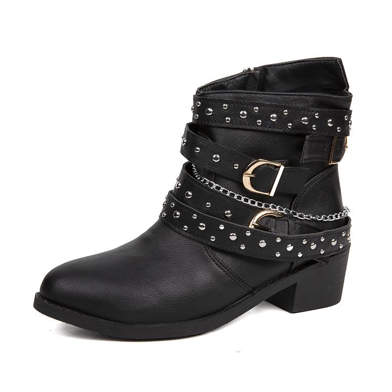 Осень и зима новая большая размерная заклепка короткие ботинки женские пряжка на ремне средняя трубка ботинки Мартин