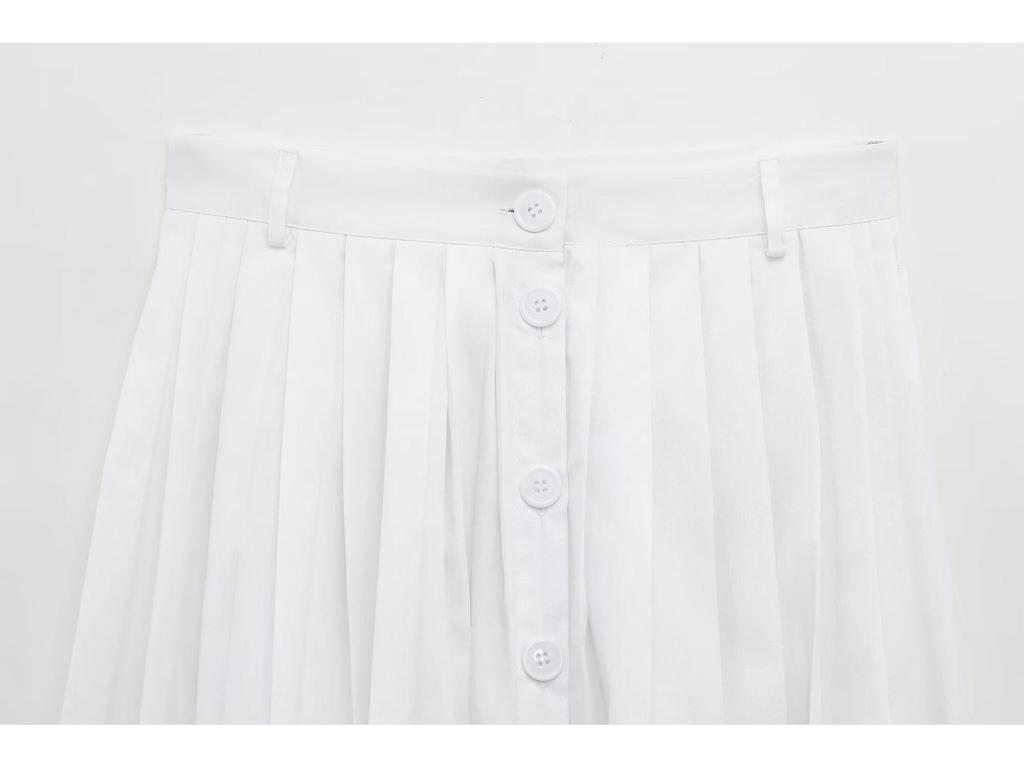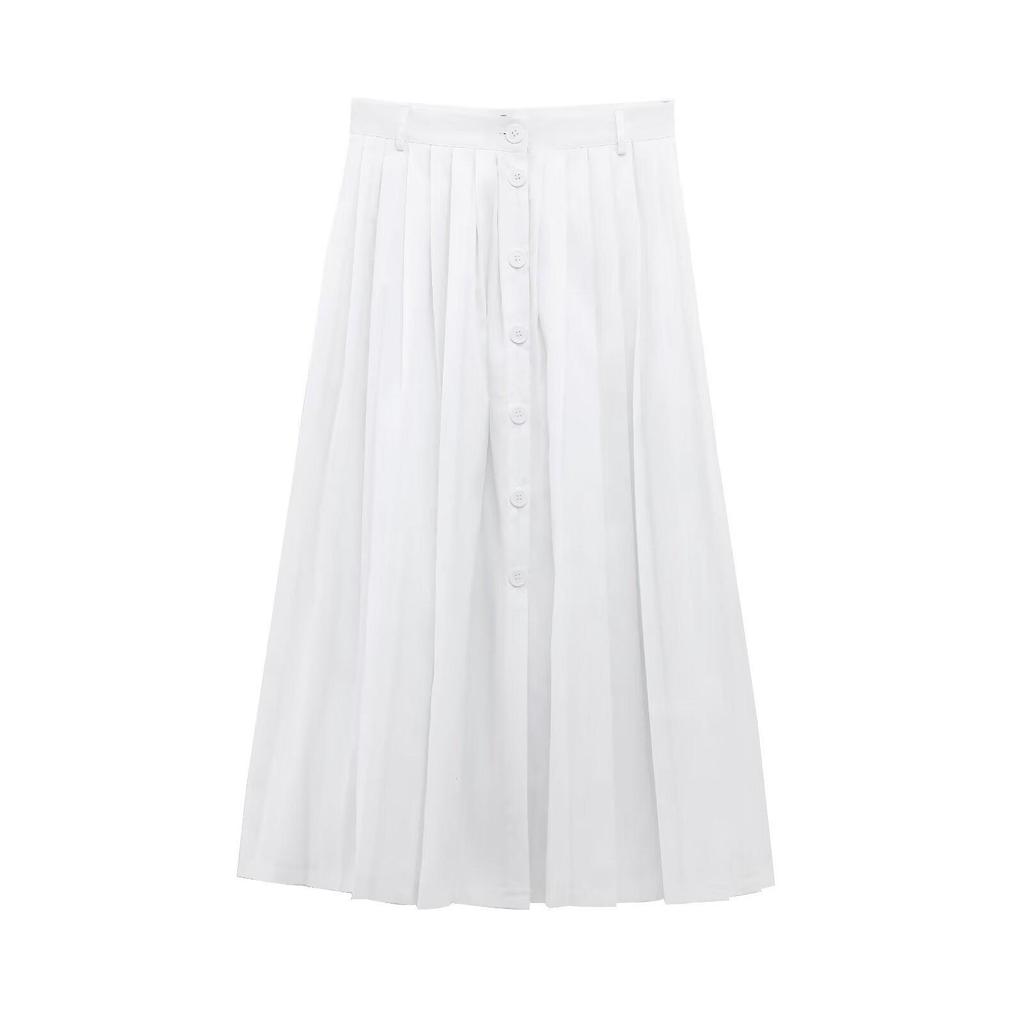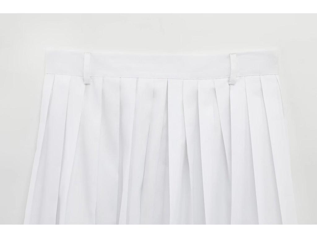 2025 Spring Women's European & American Style Pleated Midi Skirt with Strap Detail