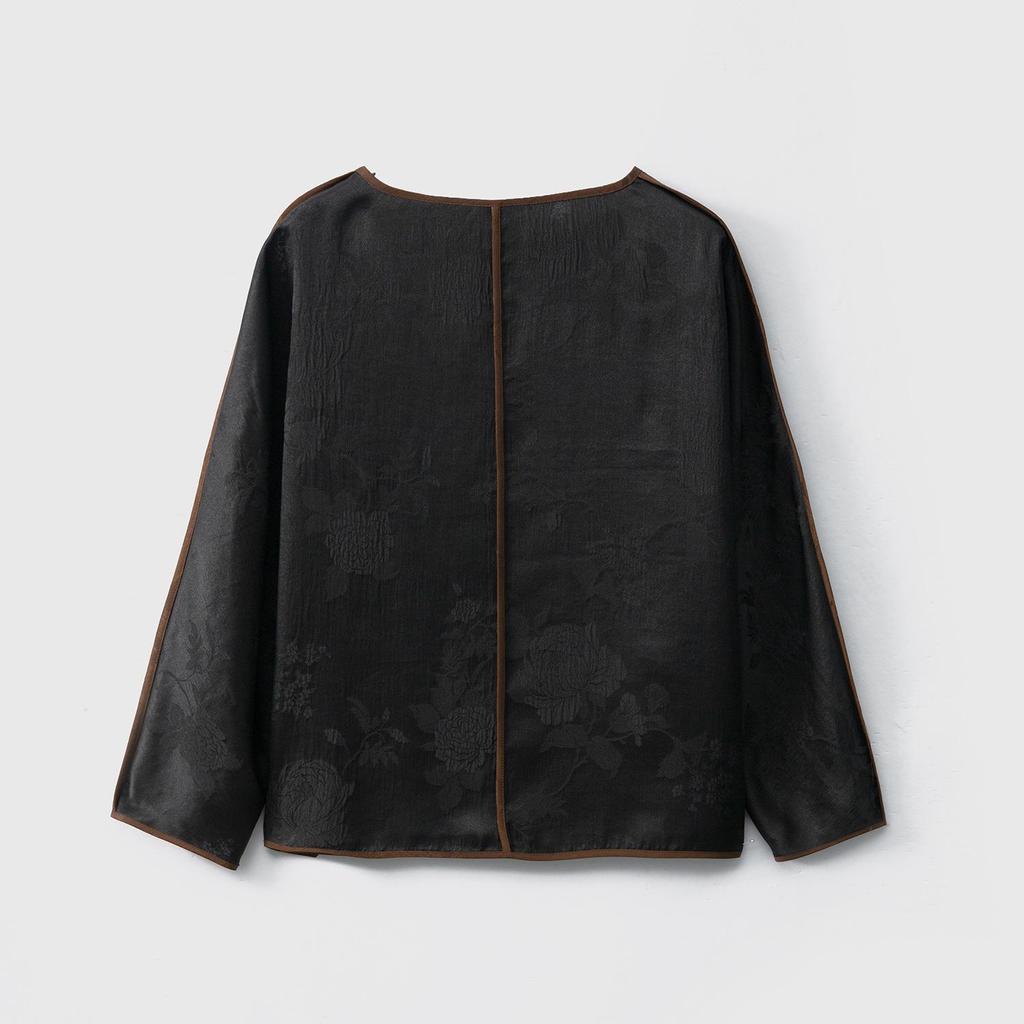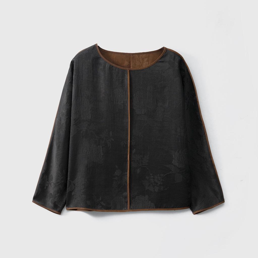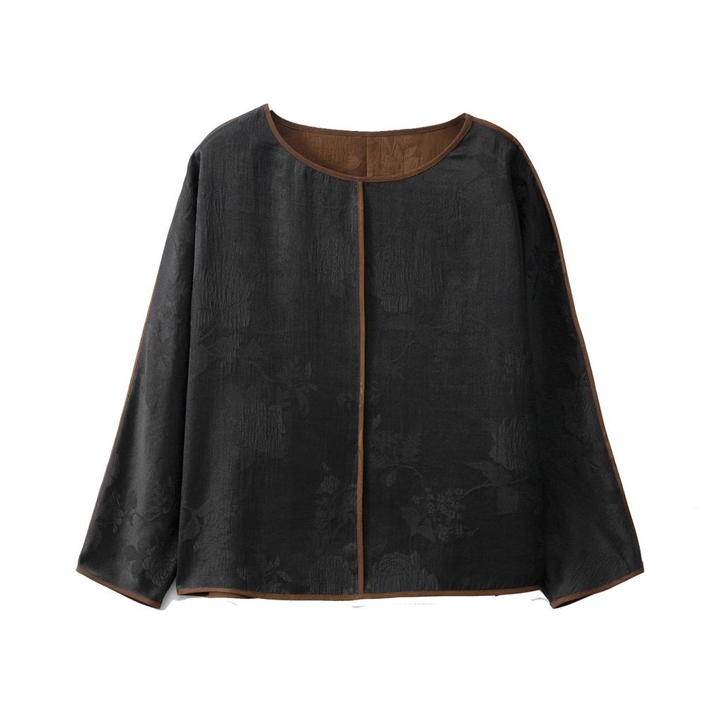 Двусторонний шелковый креп в стиле ретро - Футболка с длинным рукавом из тутового шелка, свободного кроя, коллекция осень