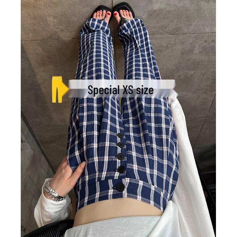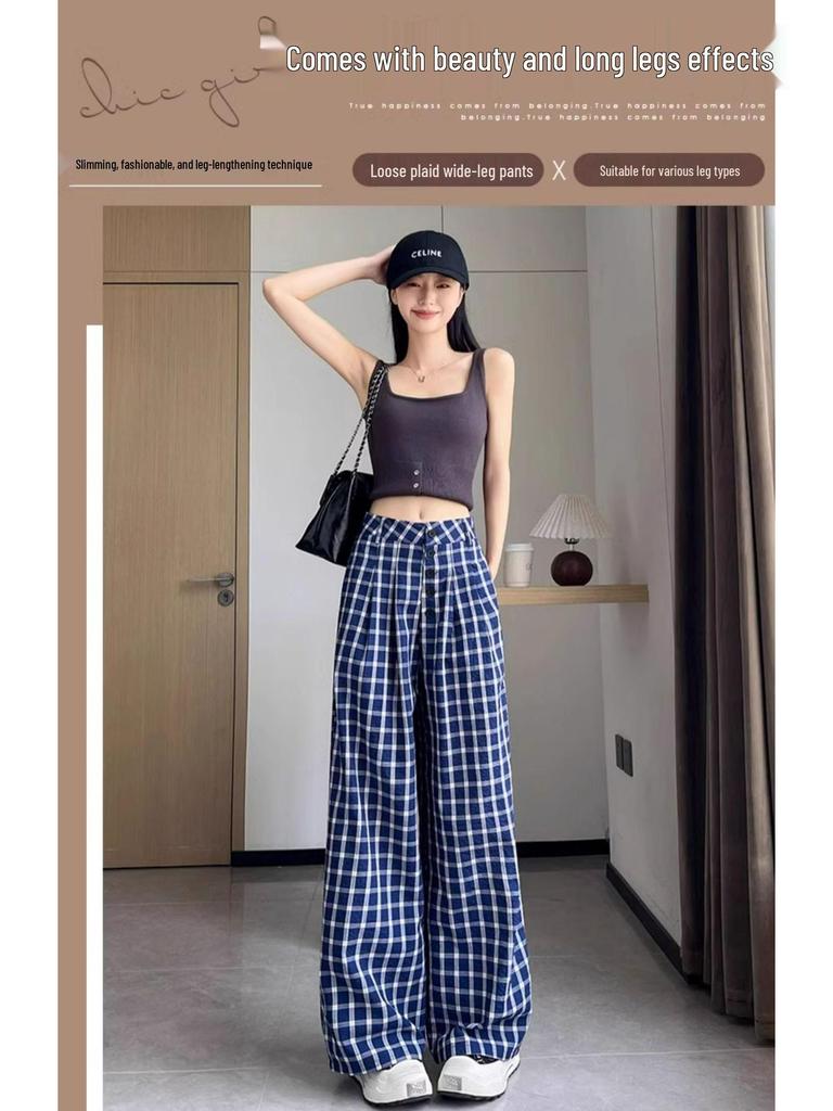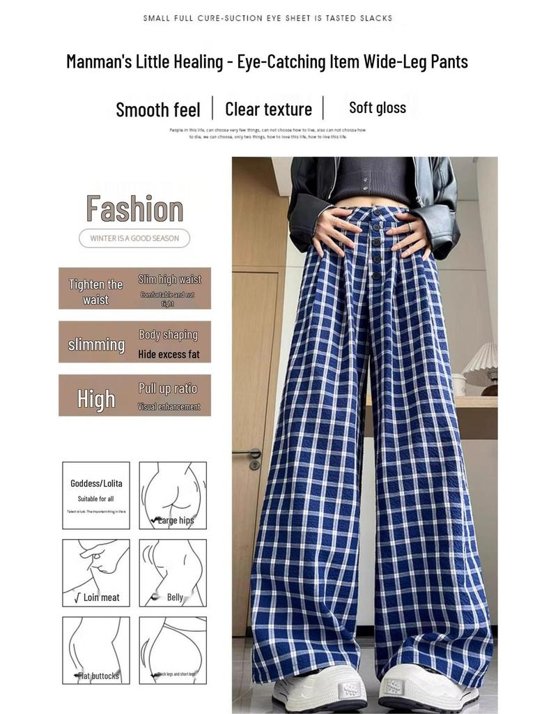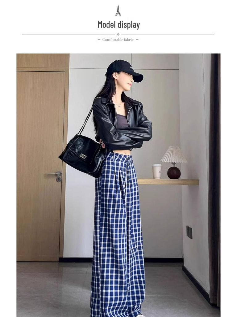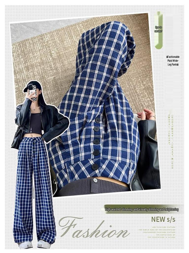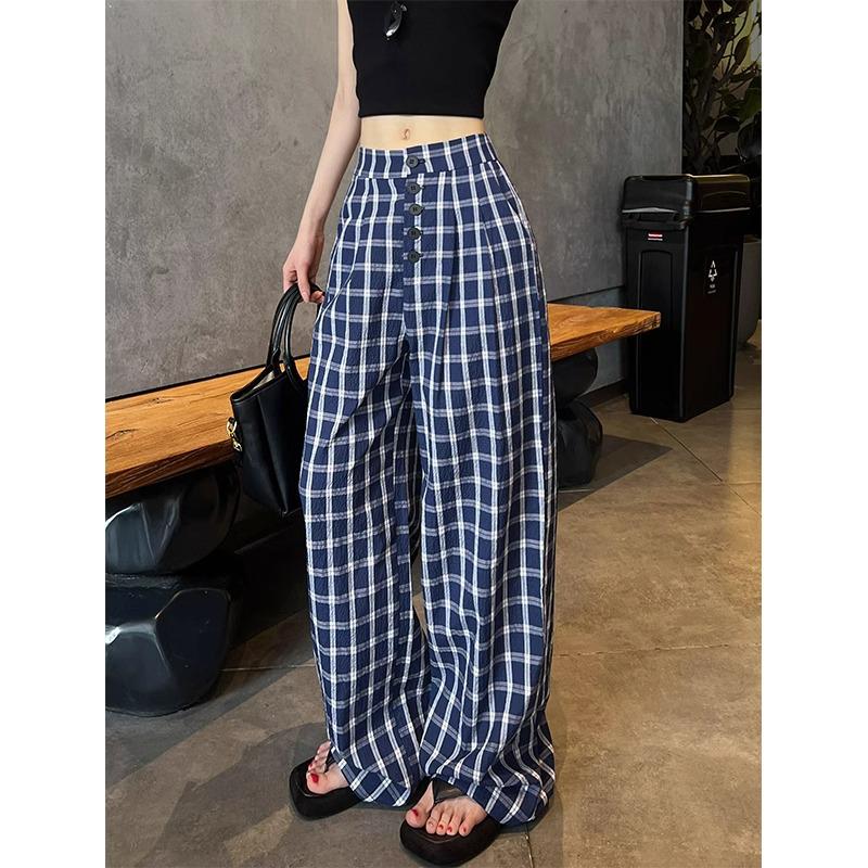 Elevate your wardrobe with these Women's Retro Plaid Double-Breasted Straight-Leg Wide-Leg Pants, designed in the chic and modern Zhao Lusi style. Part of the Spring & Autumn Collection, these pants feature a classic blue plaid pattern that exudes a vintage vibe. Crafted from high-quality polyester, they offer a comfortable and durable fit. The sportive style and wide-leg cut provide freedom of movement, making them a versatile addition to your seasonal attire. These pants are perfect for making a stylish statement while enjoying comfort and elegance.