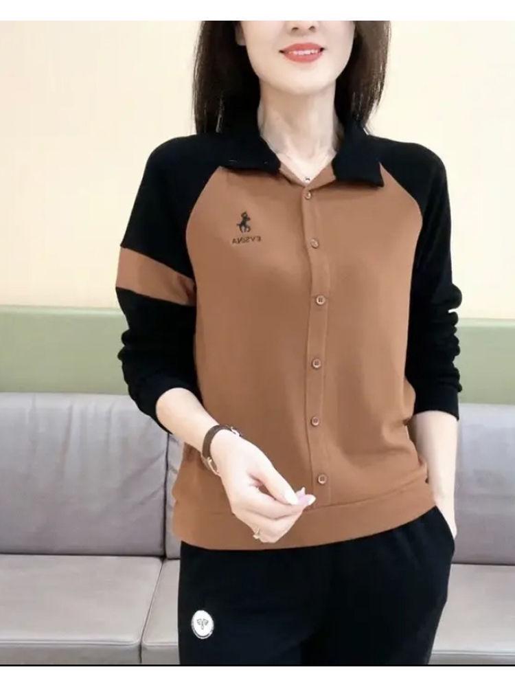 Свободный свитшот пэчворк в стиле колор-блок с отложным воротником большого размера для мам — купить товар онлайн с бесплатной доставкой до всему миру!
