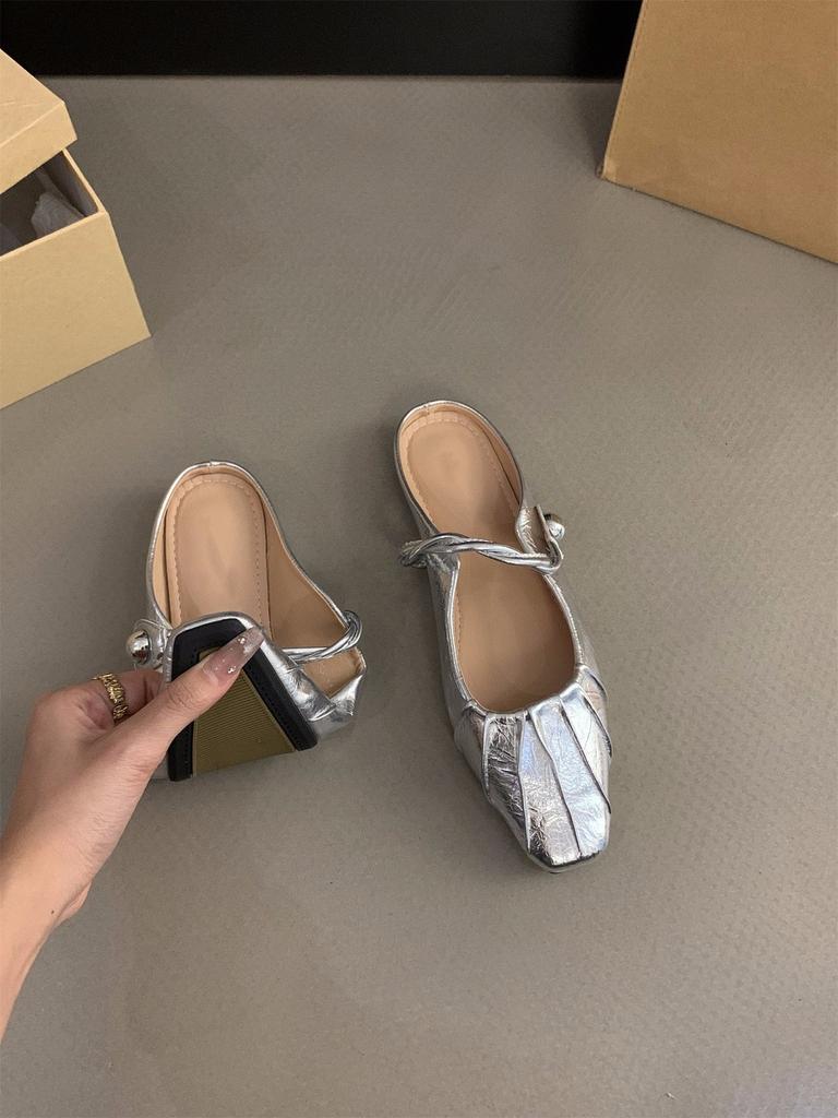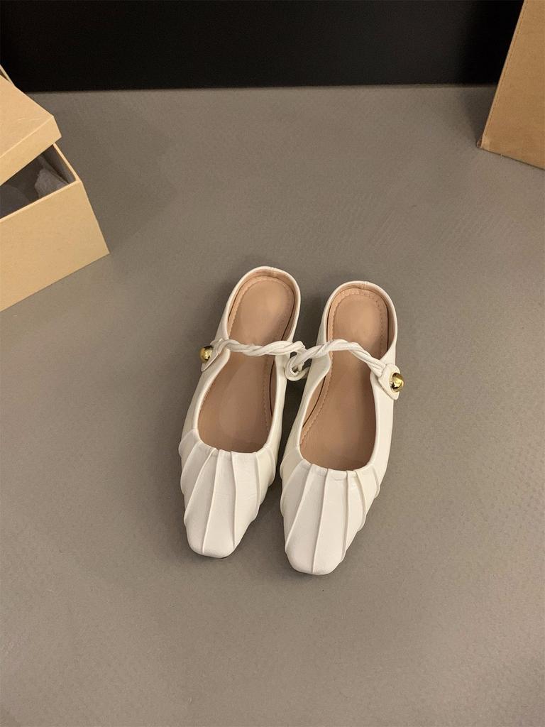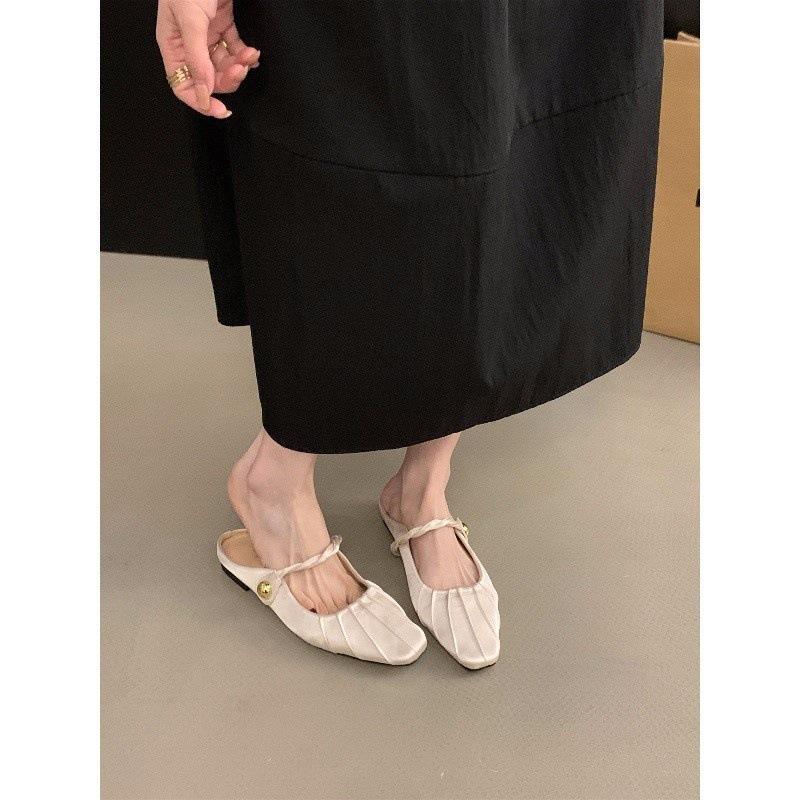 Темпераментная сумка-плиссе на плоской подошве, полушлепанцы, женская обувь для улицы с юбкой, туфли Мэри Джейн с полуподдержкой, одинарные туфли