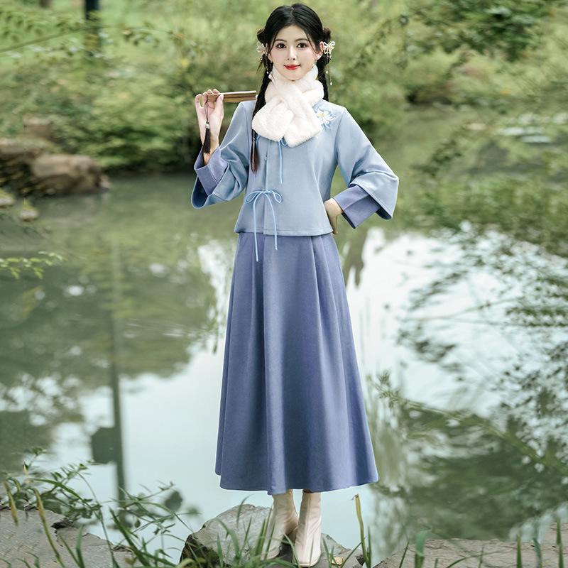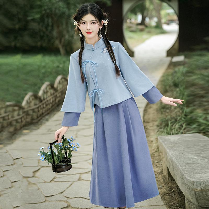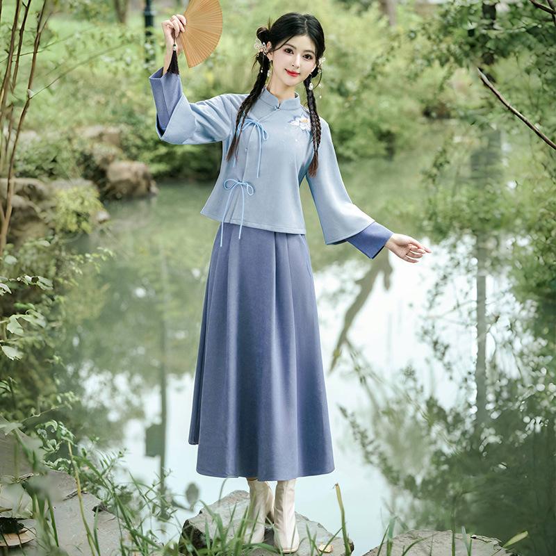 Вышитый костюм Тан и топ Ципао в стиле Ханфу из оленьей кожи - Национальный стиль, Свежий ретро-дизайн