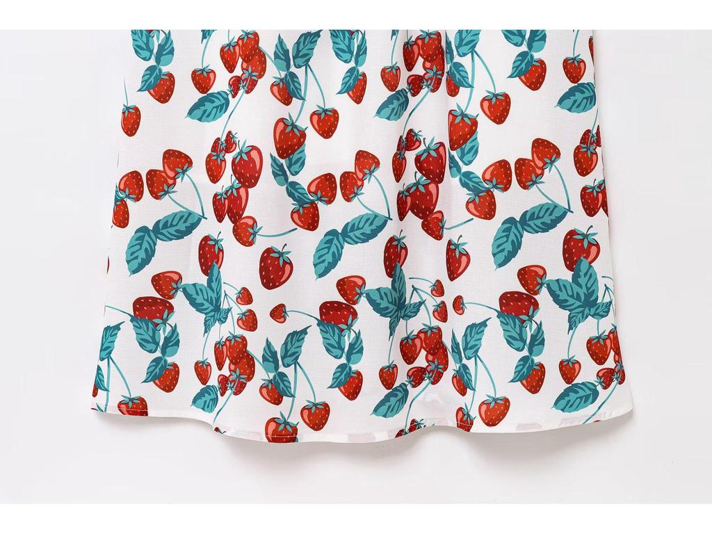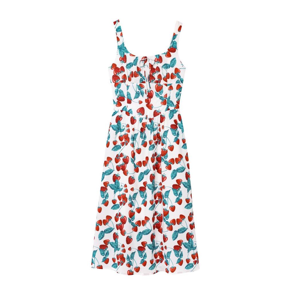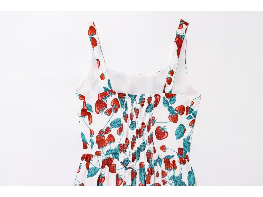 Strawberry Print Waist-Hugging French Long Dress for Women - Spring 2025 European and American Style