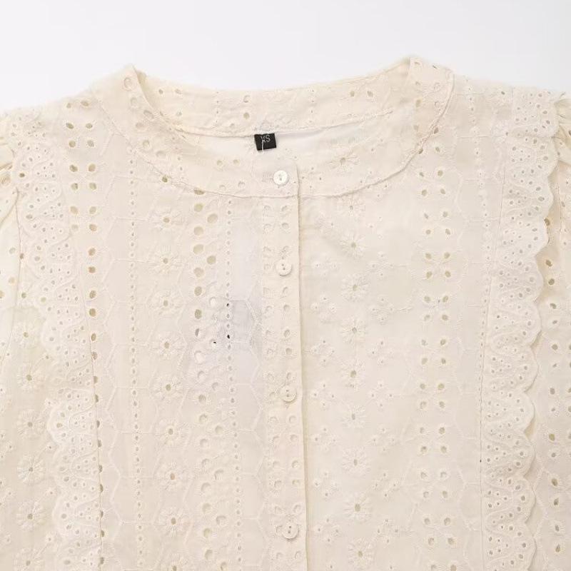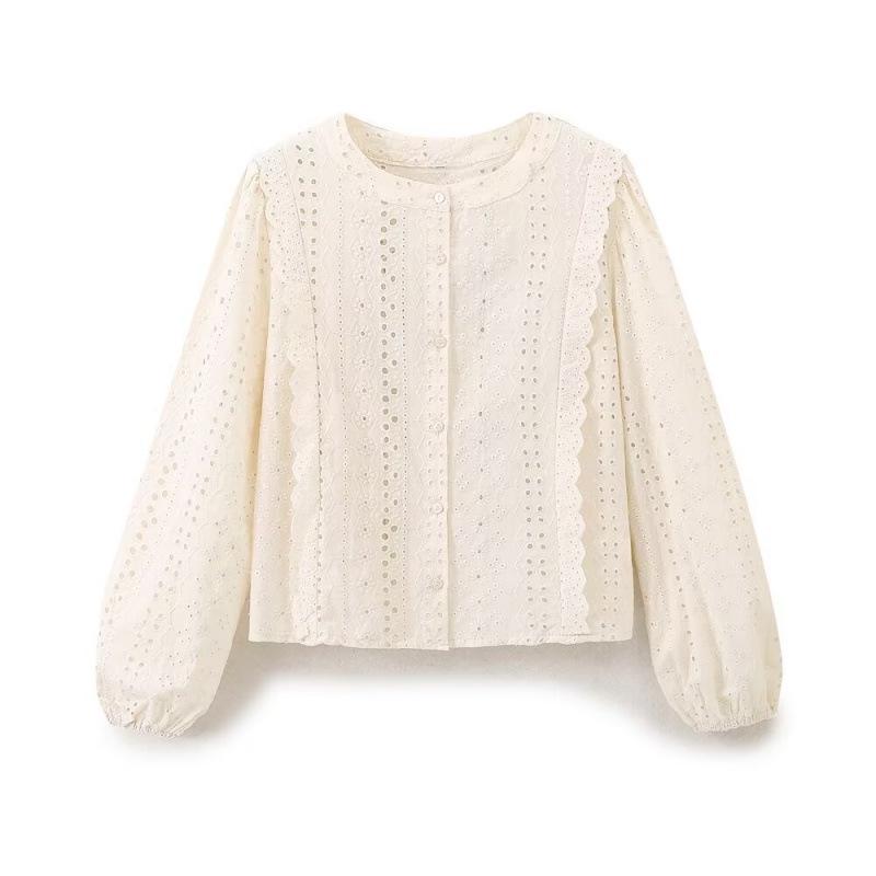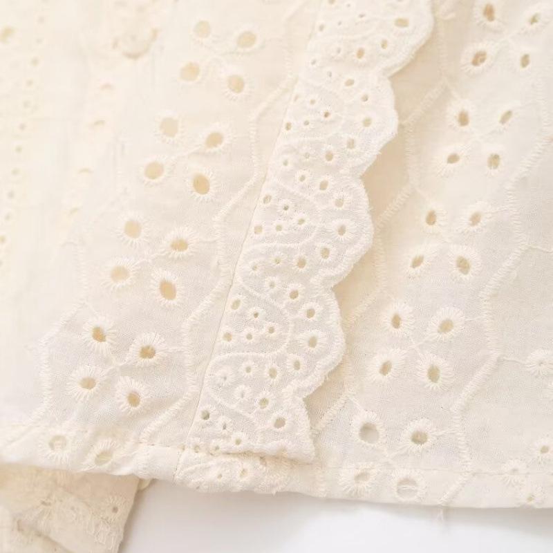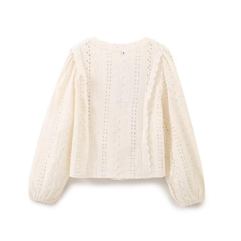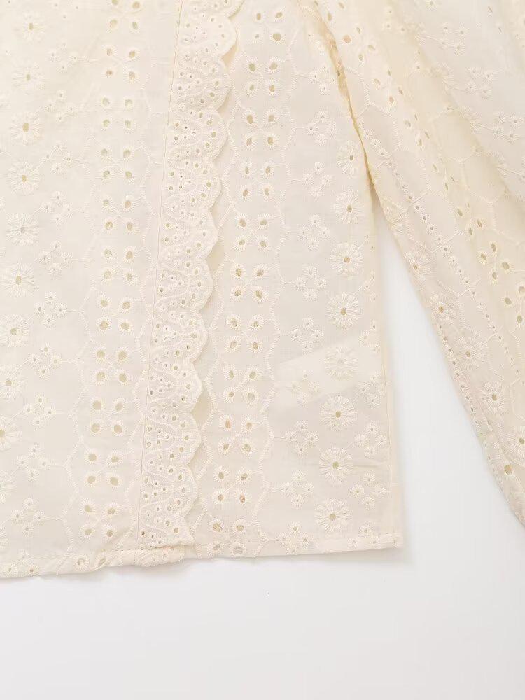 Summer Women's Fashion: European & American Long-Sleeved Embroidered Hollow Top