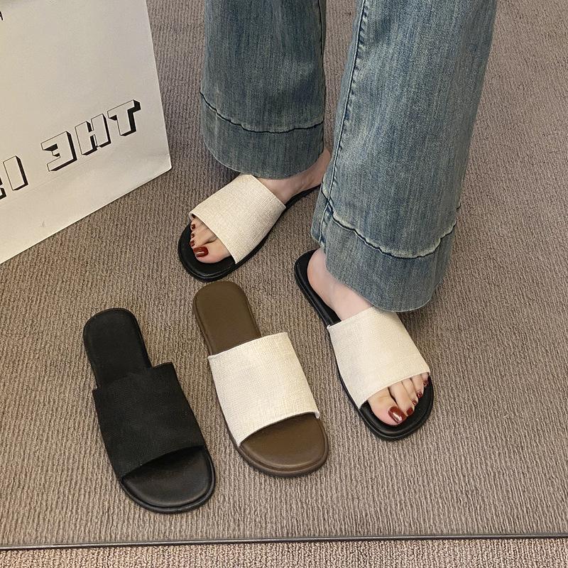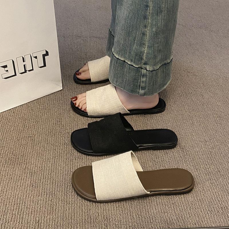 Шлепанцы женские летние, новые, с плоской подошвой, в стиле ретро, повседневные, на одно слово, для отдыха на море, пляжные, крутые шлепанцы