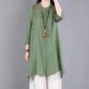 Лето 2024 Хлопок Лен Вышитая Стойка Воротник Средней Длины Легкая Защита от Солнца Кардиган Рубашка — купить товар онлайн с бесплатной доставкой по всему миру!