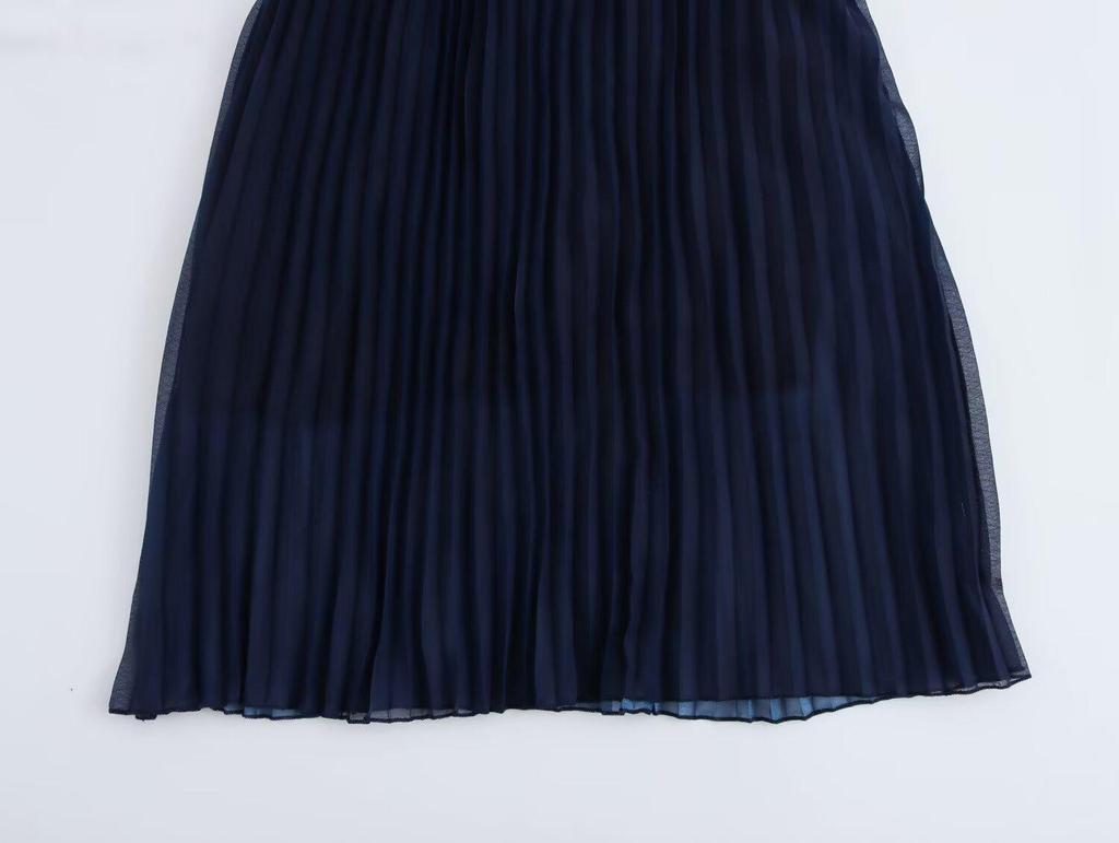 2024 Autumn Women's European & American Style Print Pleated Sleeve Ruffle Dress