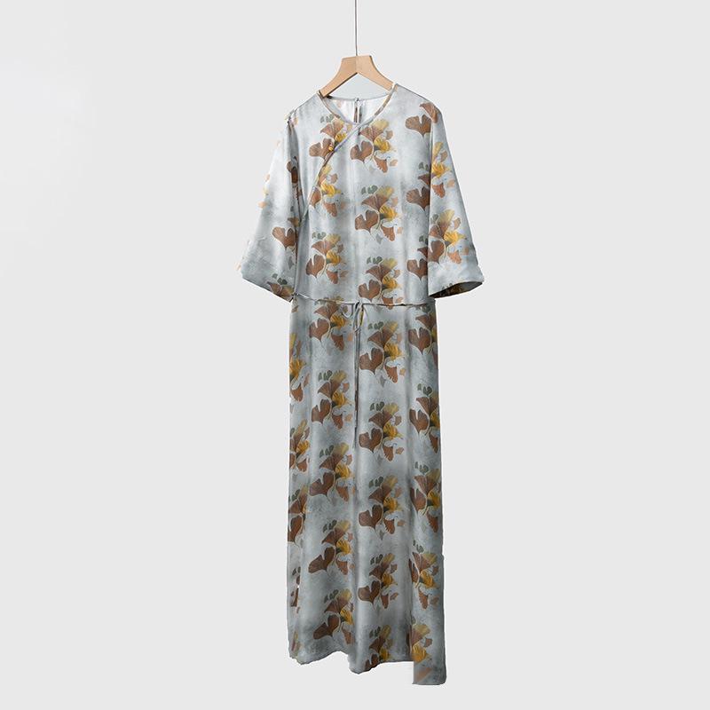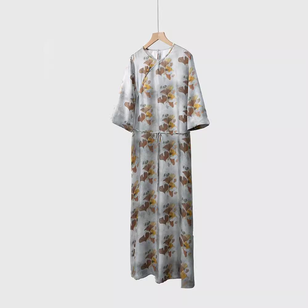 Платье-слимминг из твила 20 мм, шелка тутового дерева, с поясом, круглым вырезом и рукавами три четверти, элегантное длинное платье