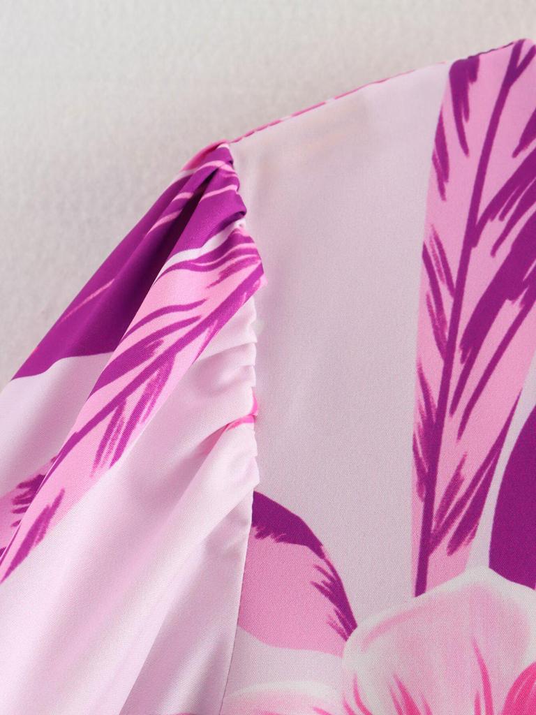 Весна 2025 Женское Европейская и Американская Мода Платье с Коротким Рукавом Стрейч с Принтом