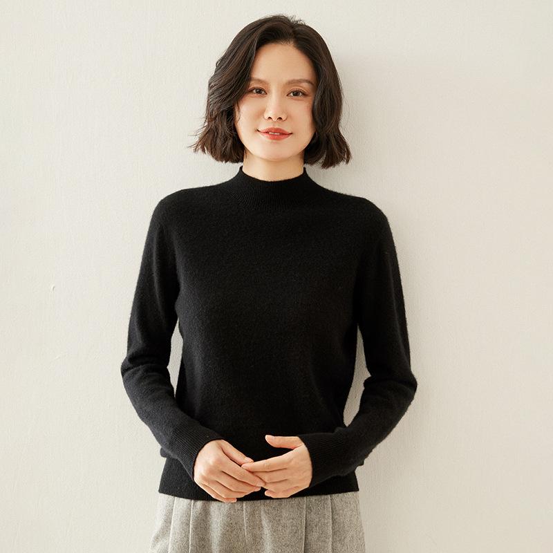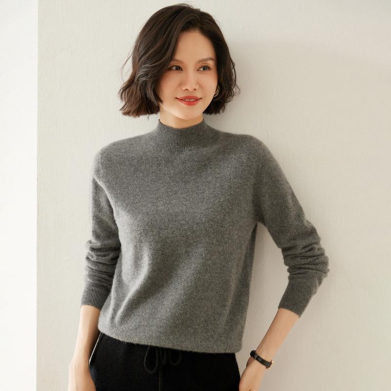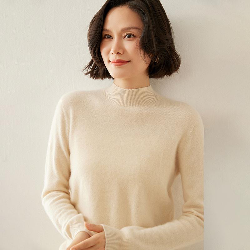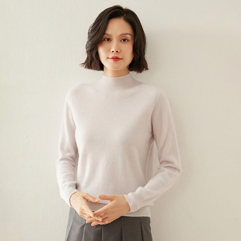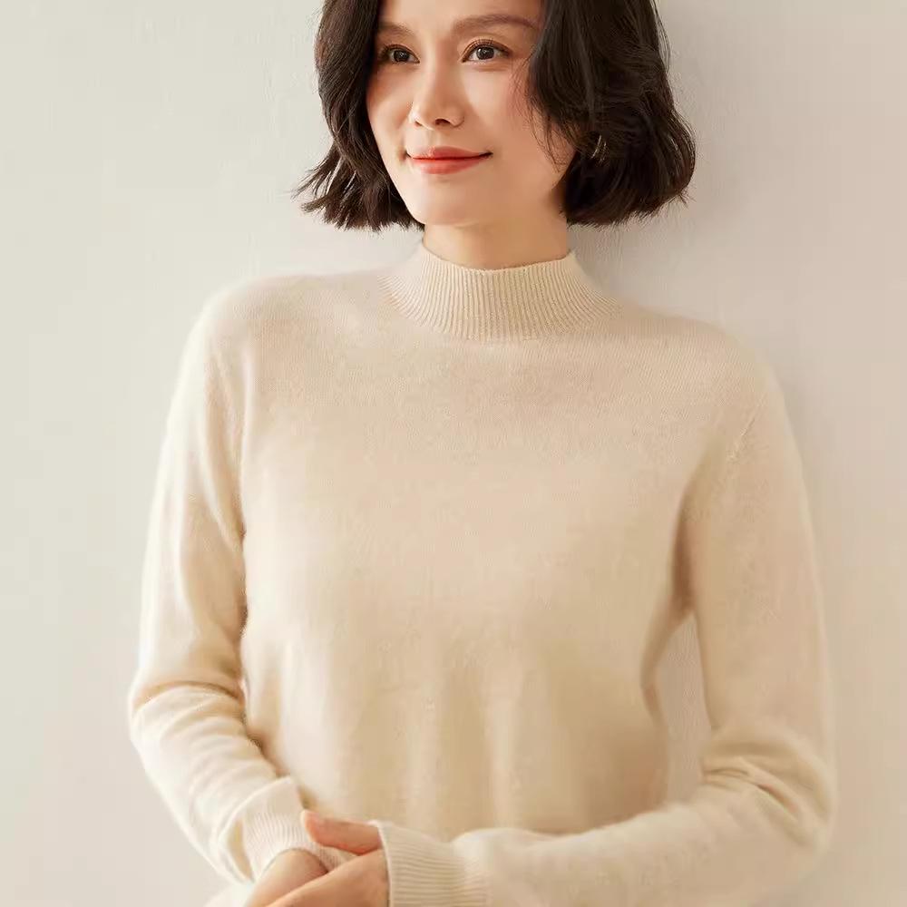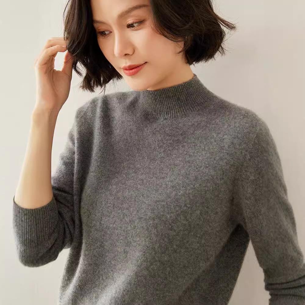 Женский кашемировый свитер облегающего кроя с полувысоким воротником: Теплый и универсальный вязаный пуловер