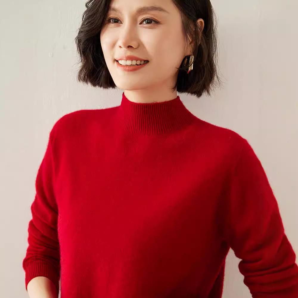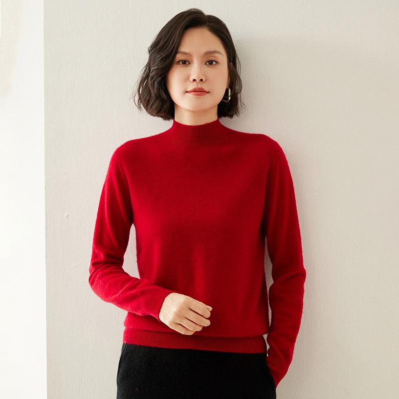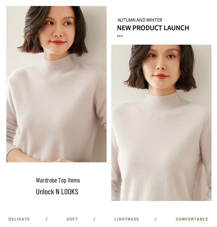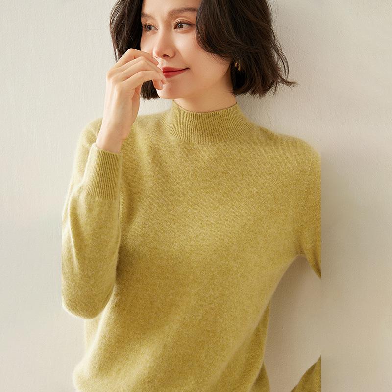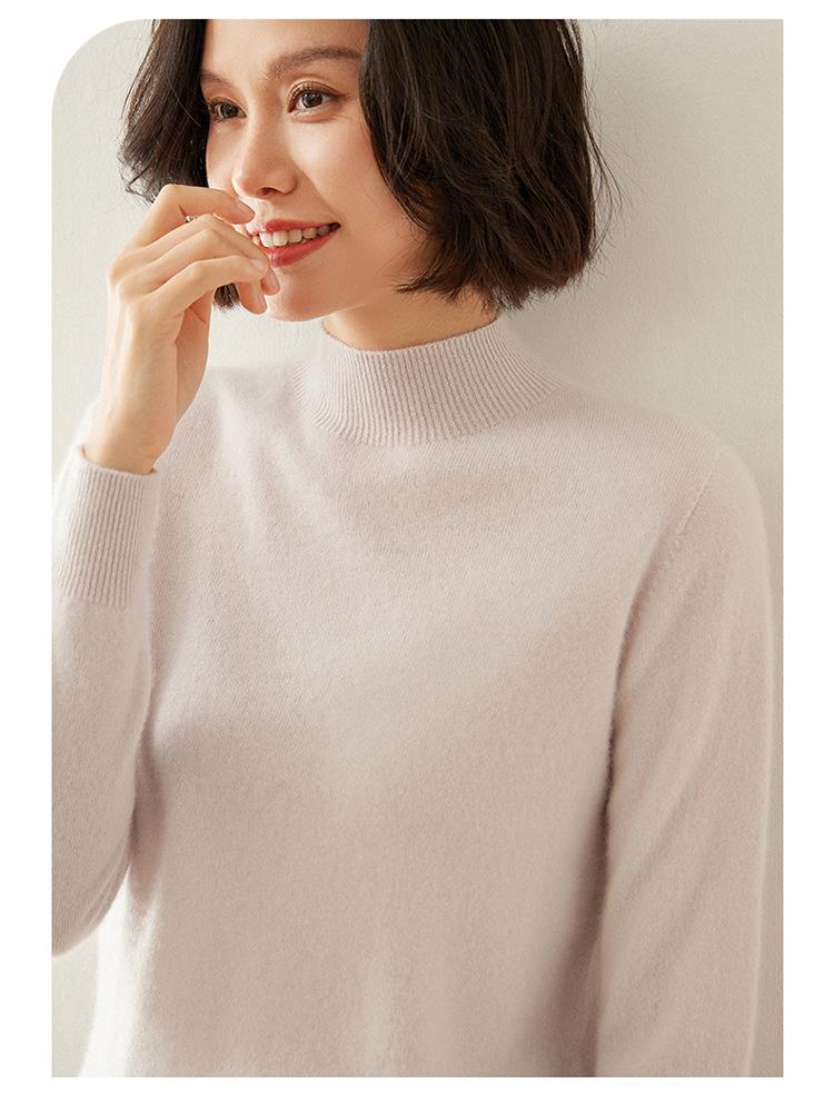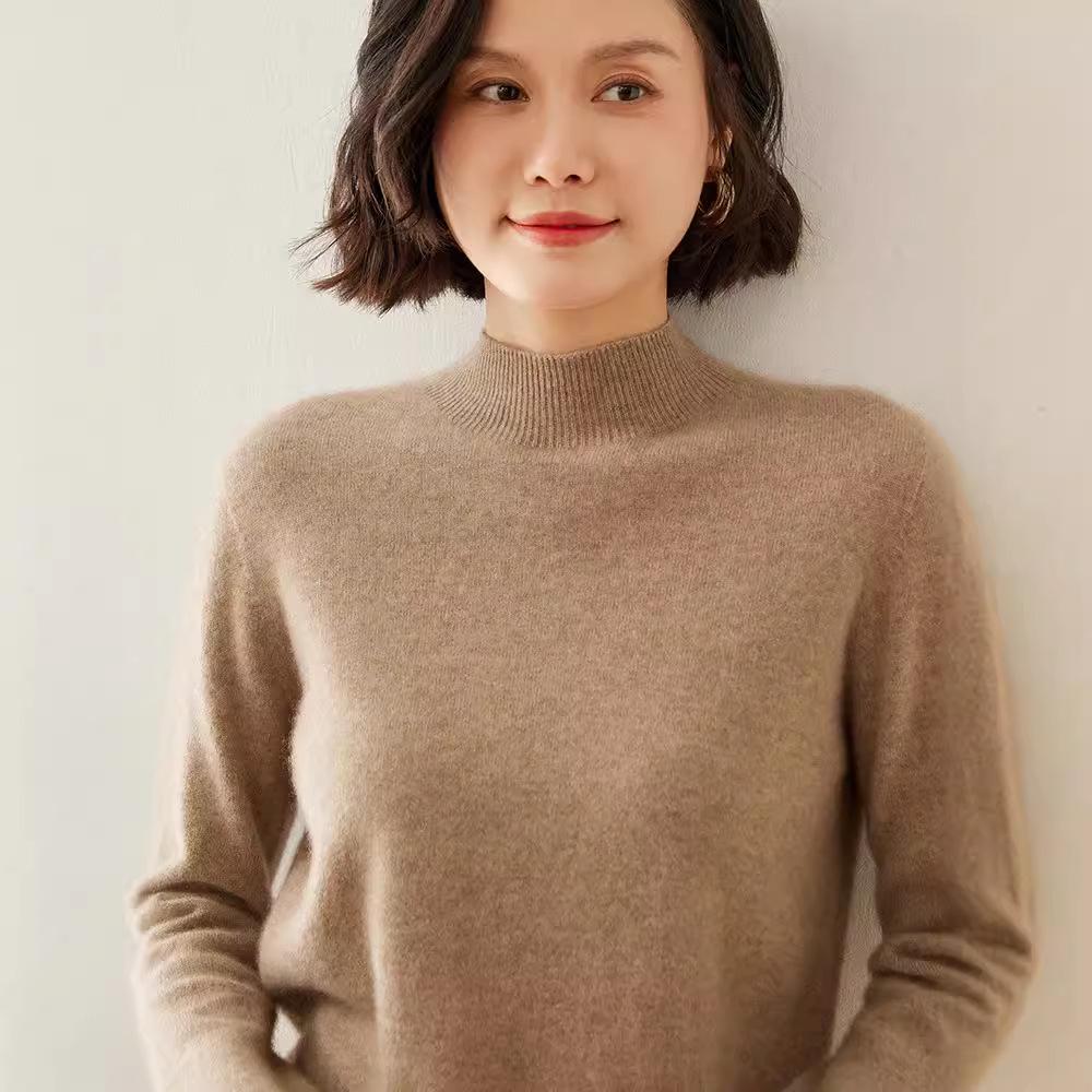 Женский кашемировый свитер облегающего кроя с полувысоким воротником: Теплый и универсальный вязаный пуловер