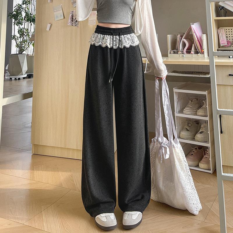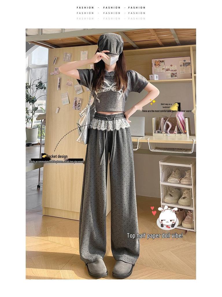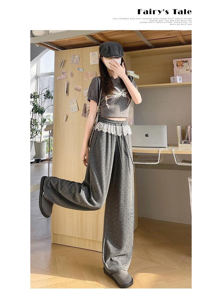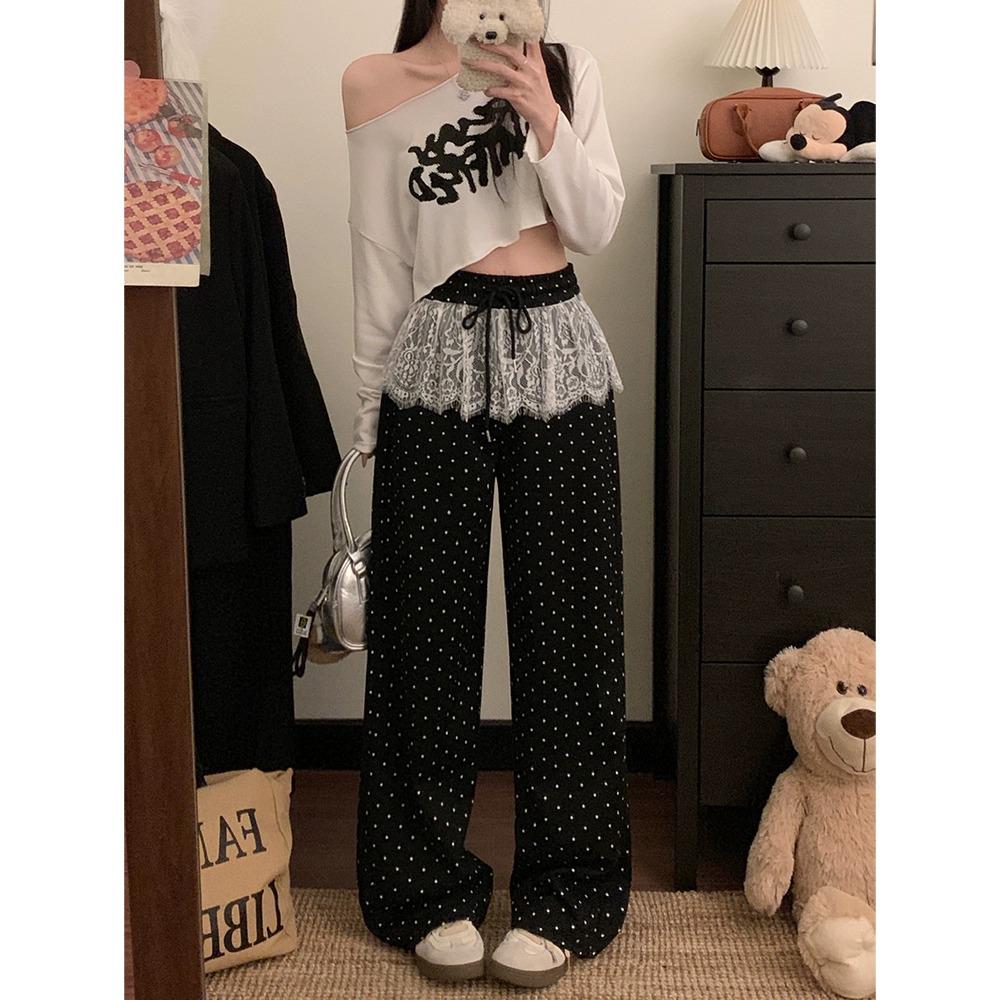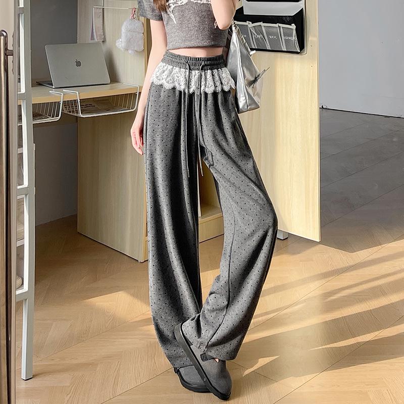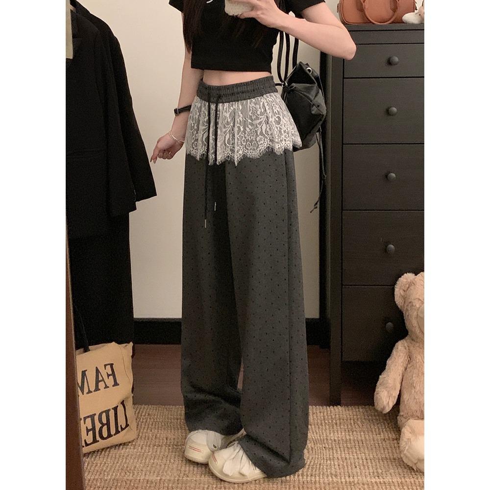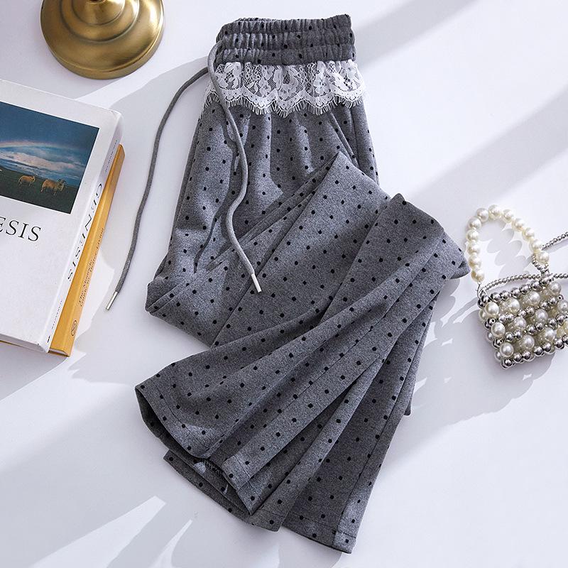 Серые кружевные брюки-шаровары в горошек: Женские спортивные брюки с высокой талией, на кулиске, свободные, с широкими штанинами, для весны