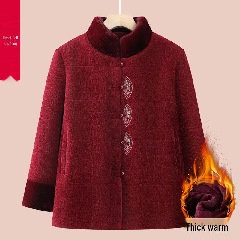 Окутайтесь теплом и стилем с этой элегантной красной зимней хлопковой курткой в стиле Тан, разработанной специально для пожилых женщин.. Куртка, изготовленная из высококачественного полиэстера, обеспечивает мягкую и удобную посадку, а также отличную теплоизоляцию от холода.. Полиэстеровый мех добавляет нотку роскоши и изысканности, что делает его идеальным как для повседневных выходов, так и для особых случаев.. Эта куртка с традиционным дизайном костюма Тан прекрасно сочетает культурное наследие с современным комфортом, что делает ее незаменимым дополнением к любому зимнему гардеробу.