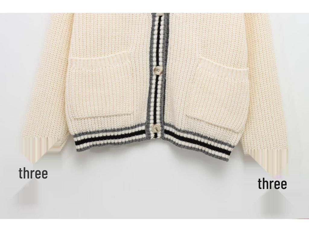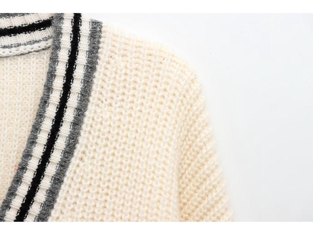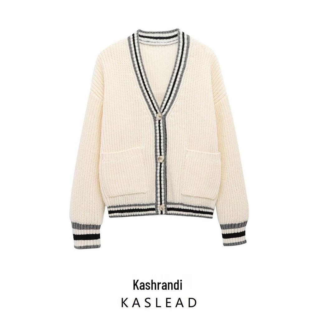 Женский вязаный кардиган с V-образным вырезом и длинными рукавами, в европейском и американском стиле, зима 2024