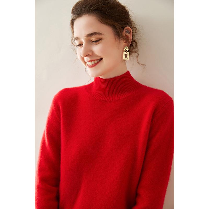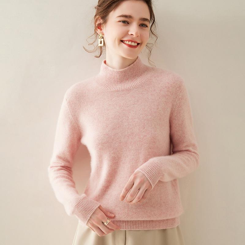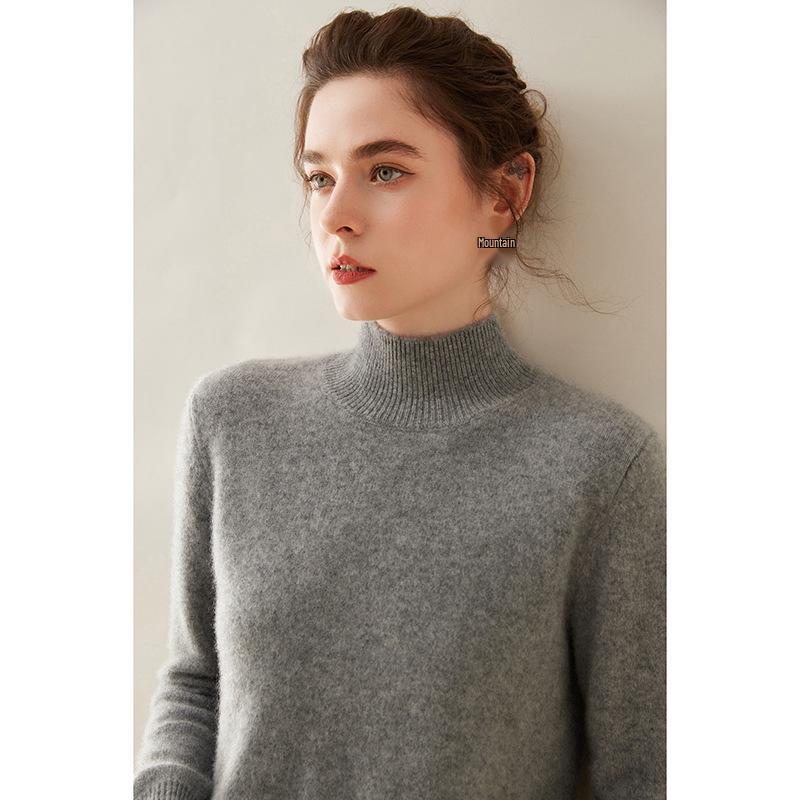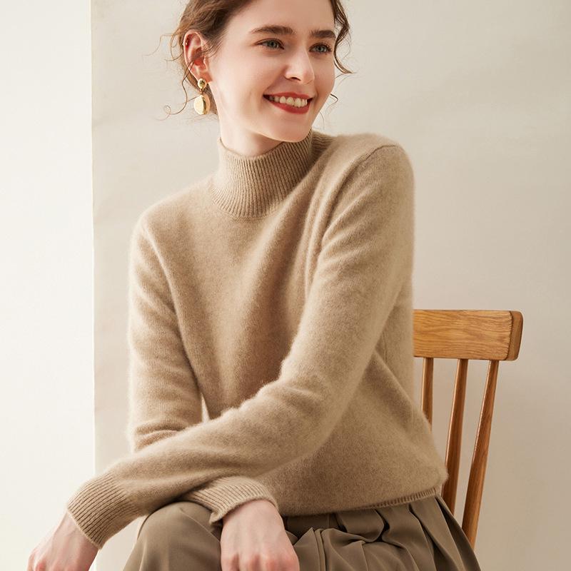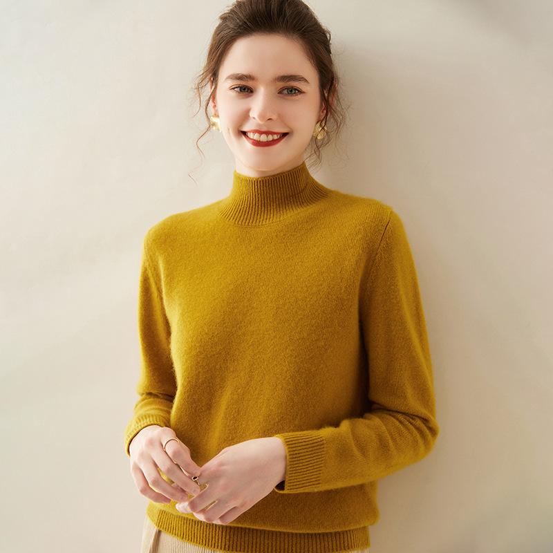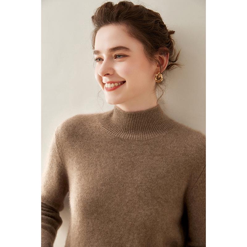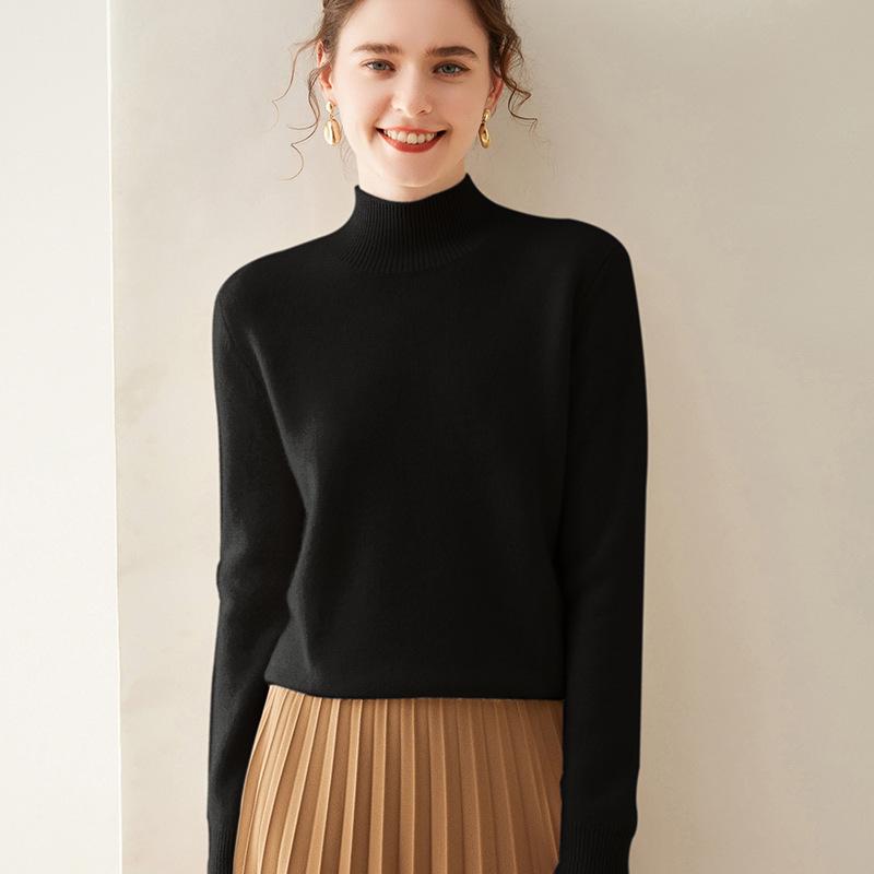 Женский кашемировый свитер с полувысоким воротником, облегающий, однотонный, для осени/зимы